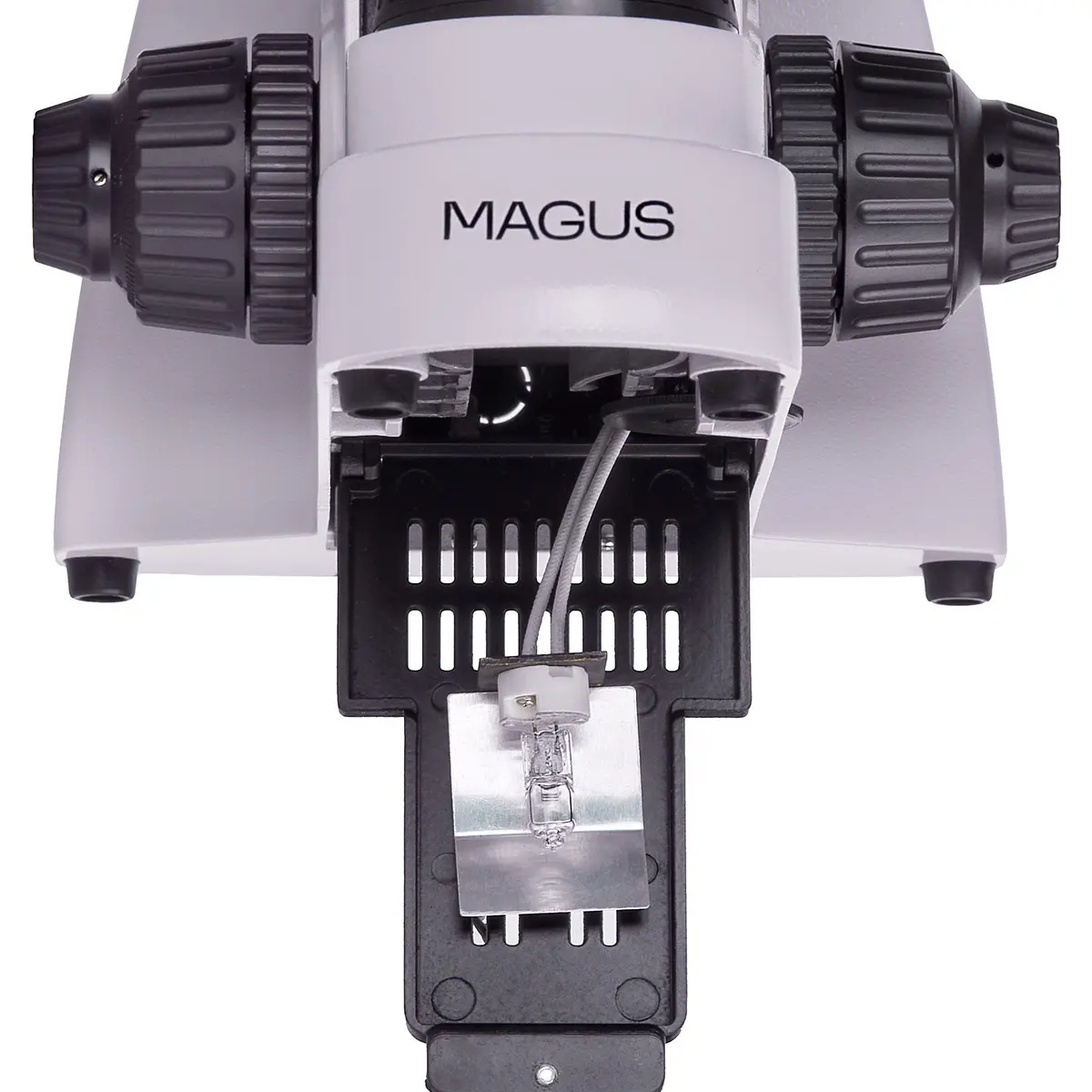 Микроскоп MAGUS оснащен мощным 30-ваттным галогенным осветителем проходящего света, который обеспечивает яркое естественное освещение при наблюдении. Использование линзы Бертрана для коноскопии и ортоскопии, а также компенсаторов, позволяет дополнительно настраивать исследуемое изображение.