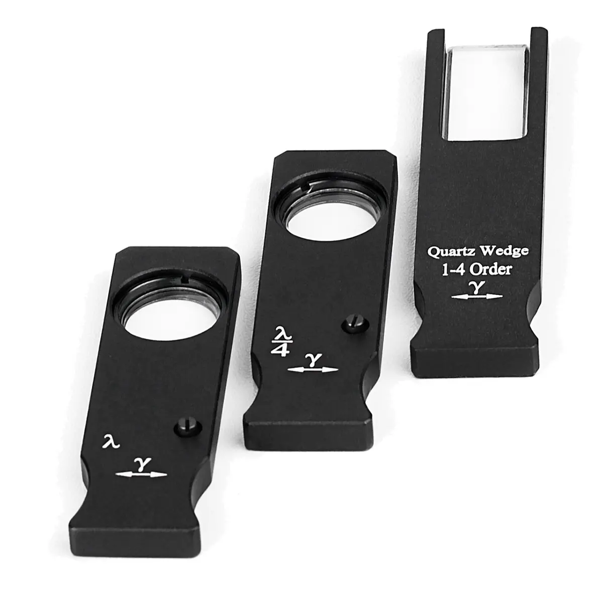Оборудование использует оптическое свойство двойного лучепреломления анизотропных объектов для формирования изображения. Плоско-поляризованный свет, проходя через анизотропный образец, расщепляется на два луча и меняет плоскость поляризации. Анализатор приводит колебания лучей в одну плоскость, где они интерферируют. В результате получается яркое высококонтрастное изображение, цвет которого меняется при вращении столика.