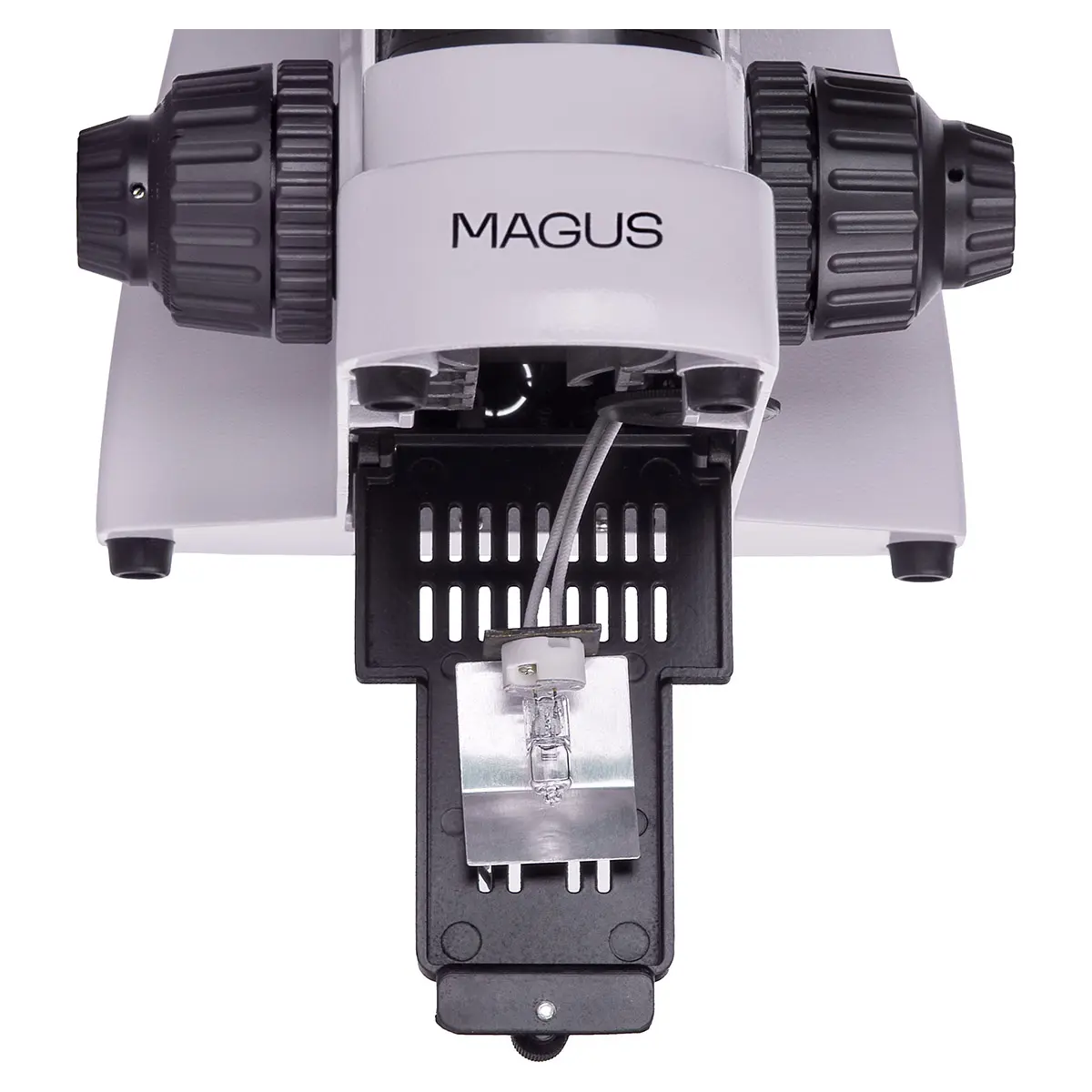 Прибор оснащен источниками света в виде галогенных ламп мощностью 30 Вт. Он предлагает как проходящее, так и отраженное освещение. Освещение по Кёлеру обеспечивает равномерную и яркую подсветку объектов в отраженном и проходящем свете.
