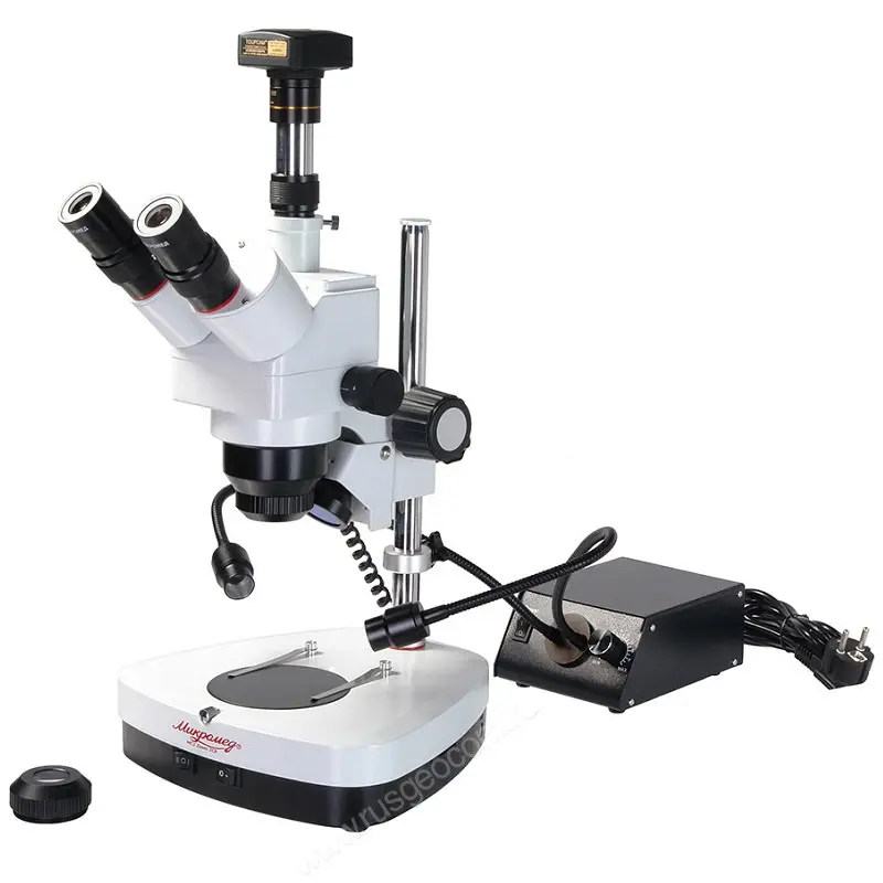 Панкратический объектив микроскопа обеспечивает плавное изменение увеличения. Общее увеличение микроскопа в комплекте с насадками - от 5 до 60 крат. Окуляры имеют широкое поле зрения - 23 мм.