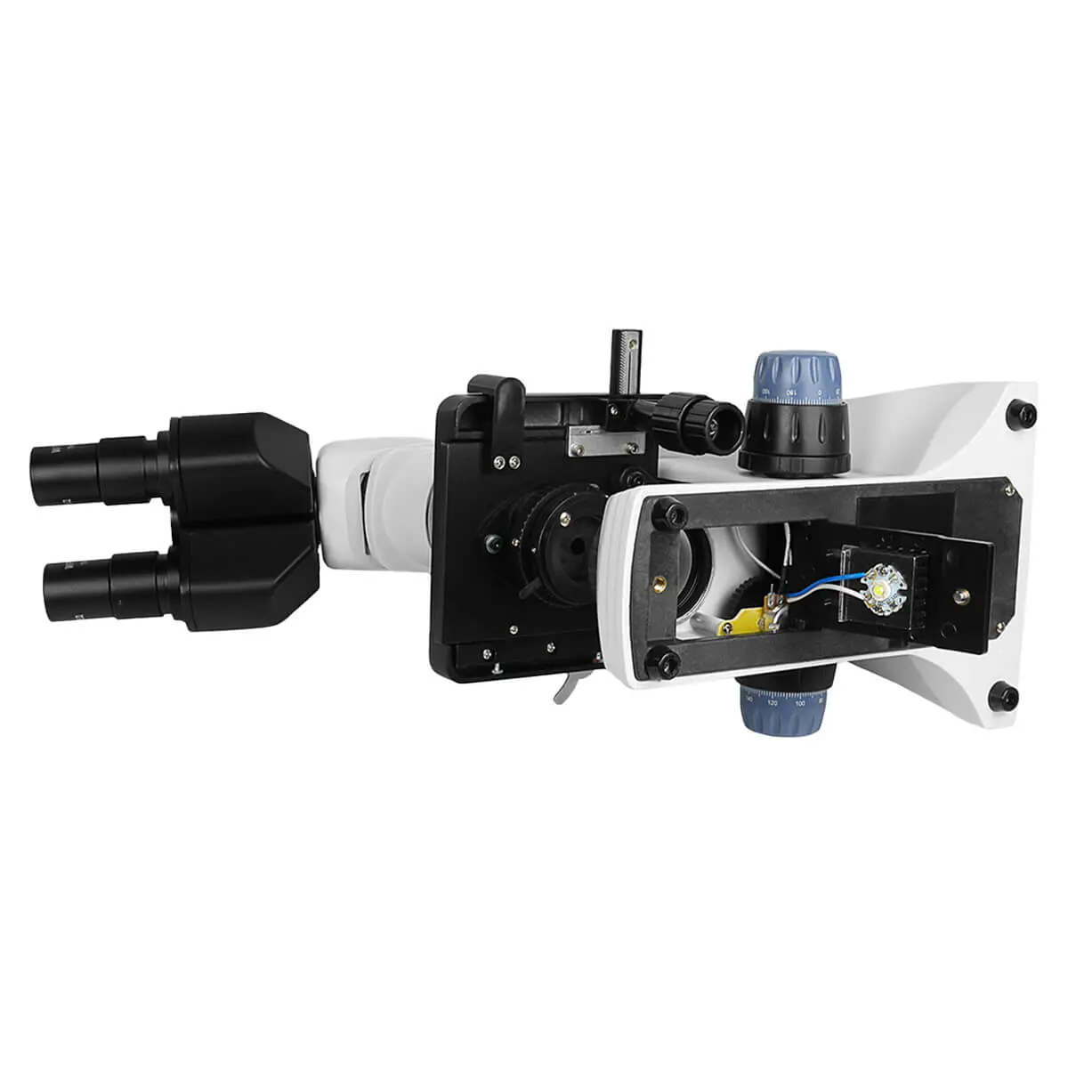 Система освещения в Микромед Р-2 (вар.Р-2B) включает ветодиодный источник света, коллектор и конденсор Аббе с апертурной ирисовой диафрагмой (N.A.=1.25). Винтовая оправа конденсора позволяет точно регулировать его положение, обеспечивая оптимальное освещение образца и контрастность изображения. Наличие откидного держателя светофильтров позволяет адаптировать освещение под специфические требования исследования. Регулировка яркости подсветки позволяет оптимизировать изображение для разных препаратов и условий освещенности.