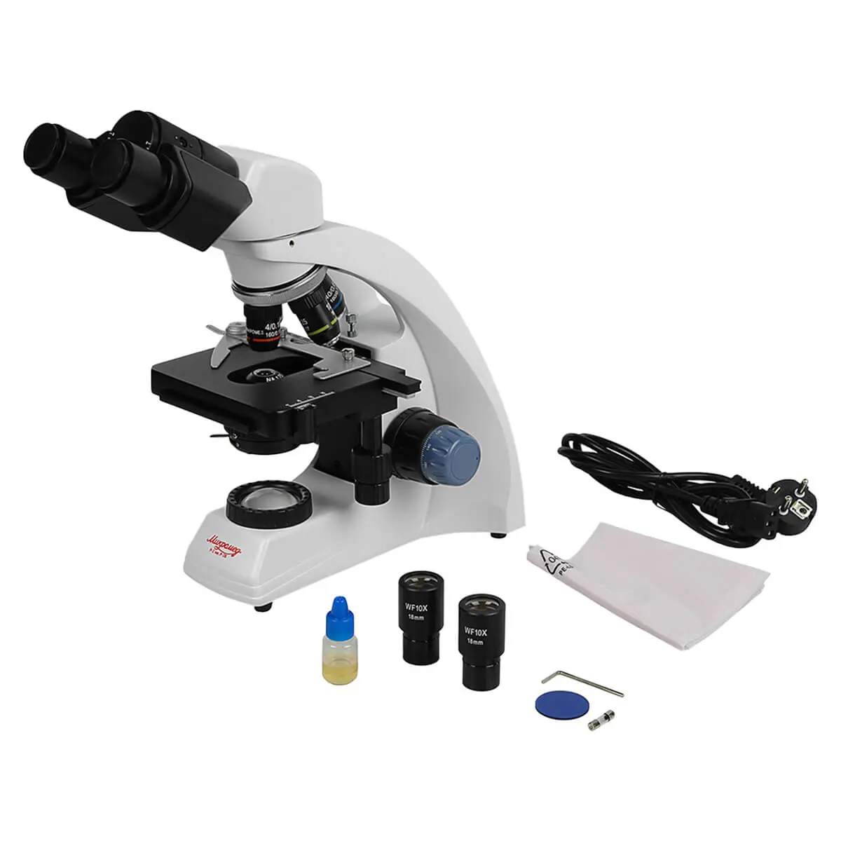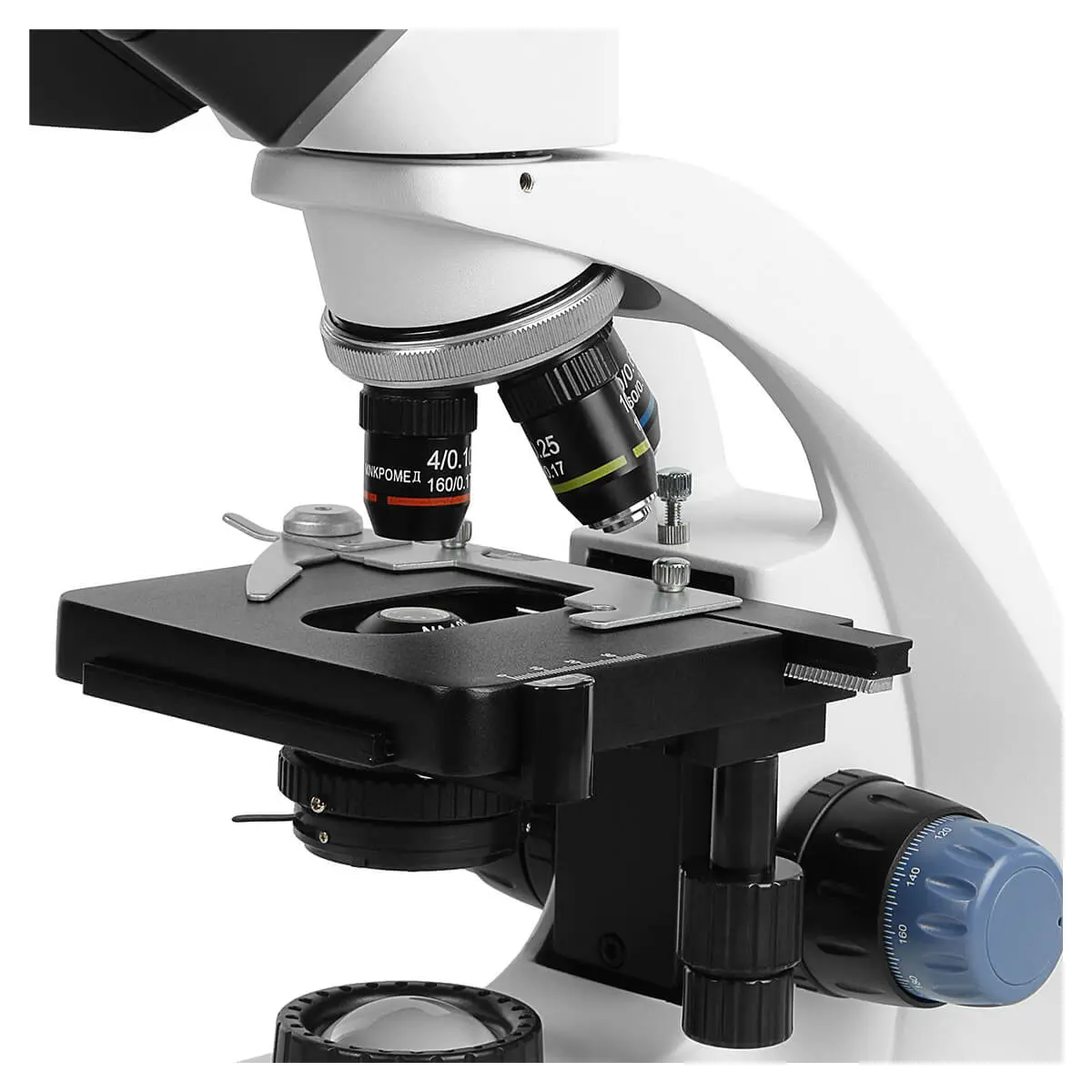 Прибор построен на основе оптической системы с длиной тубуса 160 мм, что обеспечивает стабильность и точность изображения. В комплект входят четыре ахроматических объектива с увеличением 4х, 10х, 40х и 100х (OIL) – последний предназначен для работы с иммерсионным маслом, позволяющим достичь максимального разрешения при исследовании мельчайших деталей. Качество изображения микроскопа Микромед гарантируется применением высококачественной оптики, минимизирующей аберрации и обеспечивающей четкую картинку.
