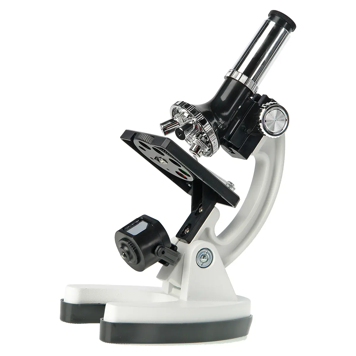 Микроскоп оснащен объективами с линзами из оптического стекла, с увеличениями 10x, 40х и 90х и с их помощью можно наблюдать отчетливые и яркие изображения. Несмотря на бюджетную цену микроскопа, объективы парфокальны, и при смене увеличений объект наблюдения не потеряется, потребуется лишь немного подфокусировать микроскоп. Объективы установлены на револьверном устройстве, рассчитанном на 3 объектива, это позволяет наблюдателю быстро переходить к исследованиям с различными увеличениями – для того, чтобы установить нужный объектив достаточно повернуть револьвер до щелчка.