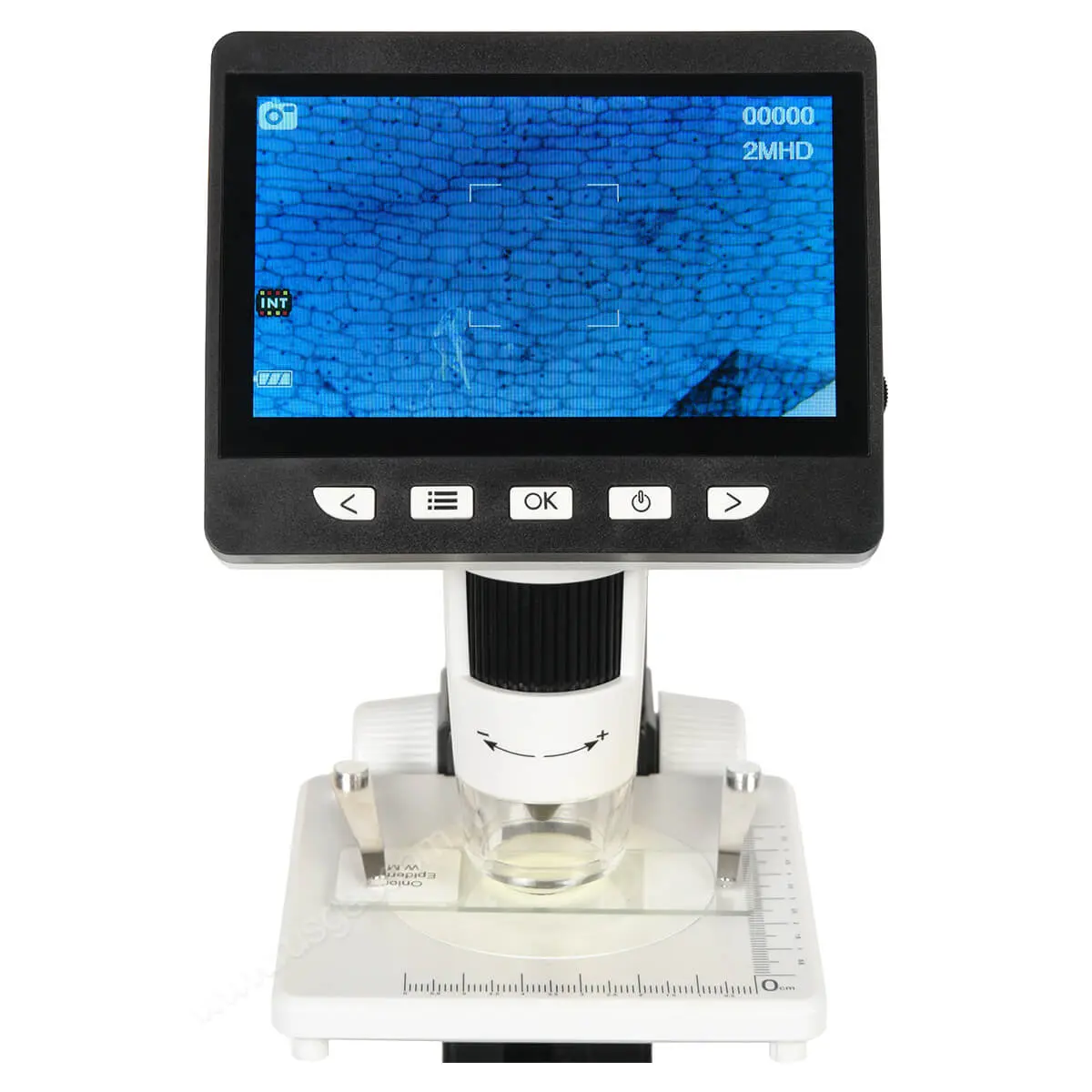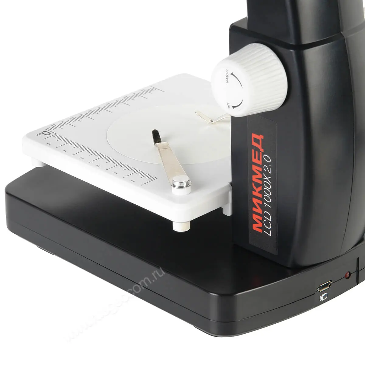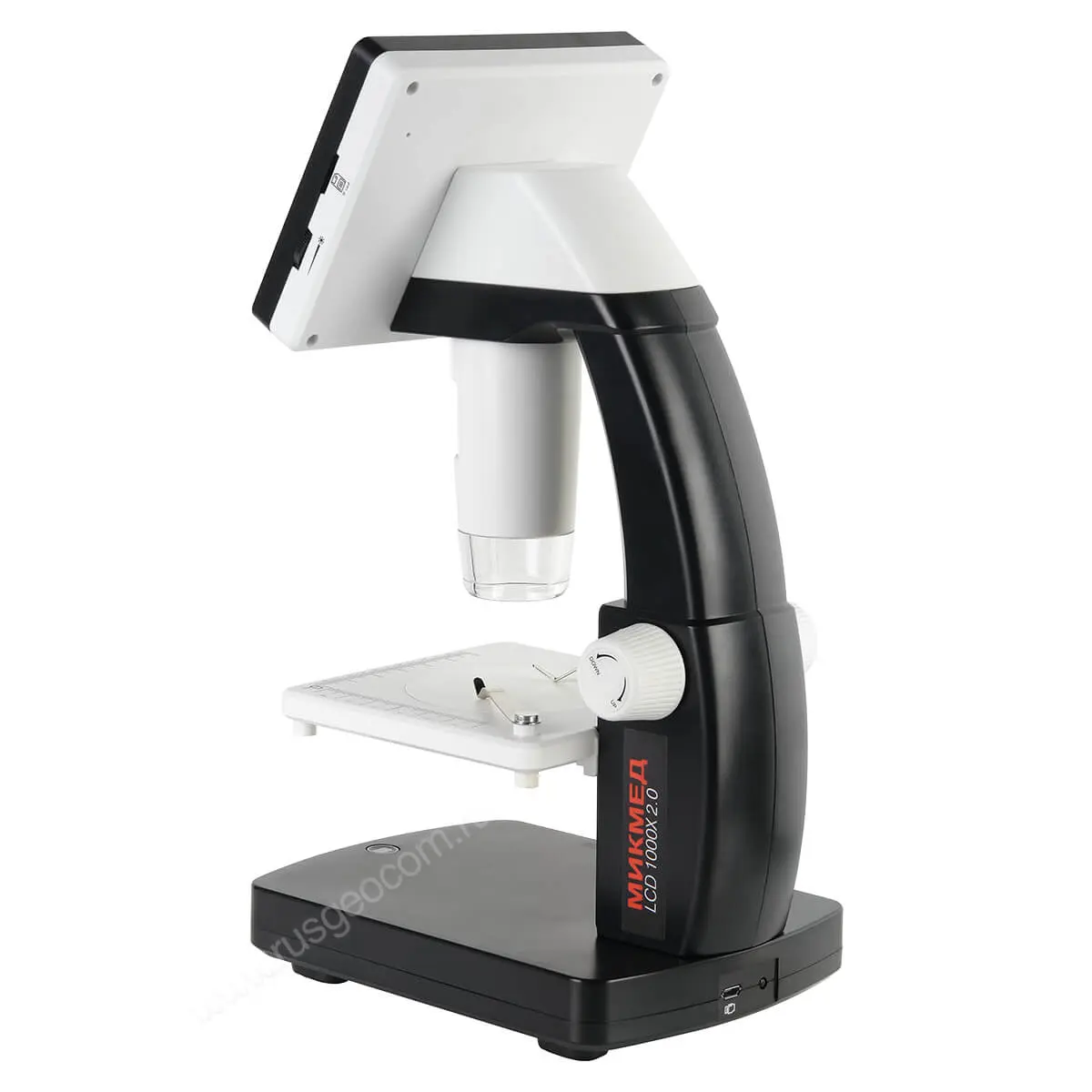 Цифровой микроскоп оснащен 2-мегапиксельной камерой и 10 светодиодами с регулируемой яркостью в качестве подсветки. Предметный столик микроскопа МИКМЕД LCD 1000Х 2.0 комплектуется пружинными зажимами для фиксации предметных стекол с образцами. Механизм подъема предметного столика выполняет функции регулировки оптического увеличения, меняя расстояние от объекта контроля до неподвижного объектива камеры микроскопа. Настройка резкости изображения производится путем поворота регулировочного кольца, изменяющего фокусировку объектива.
