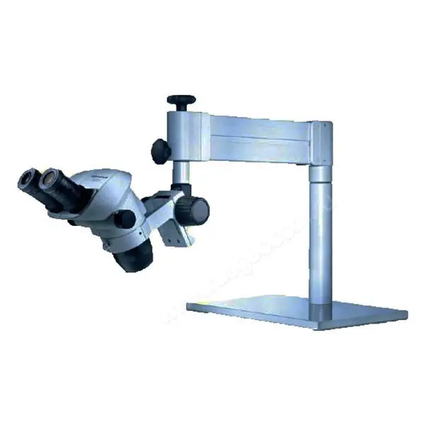 Приспособление оснащено дополнительной малой штангой, с помощью которой можно двигать микроскоп по вертикали. Благодаря этому оператор размещает оптический прибор в любом положении над исследуемым образцом.