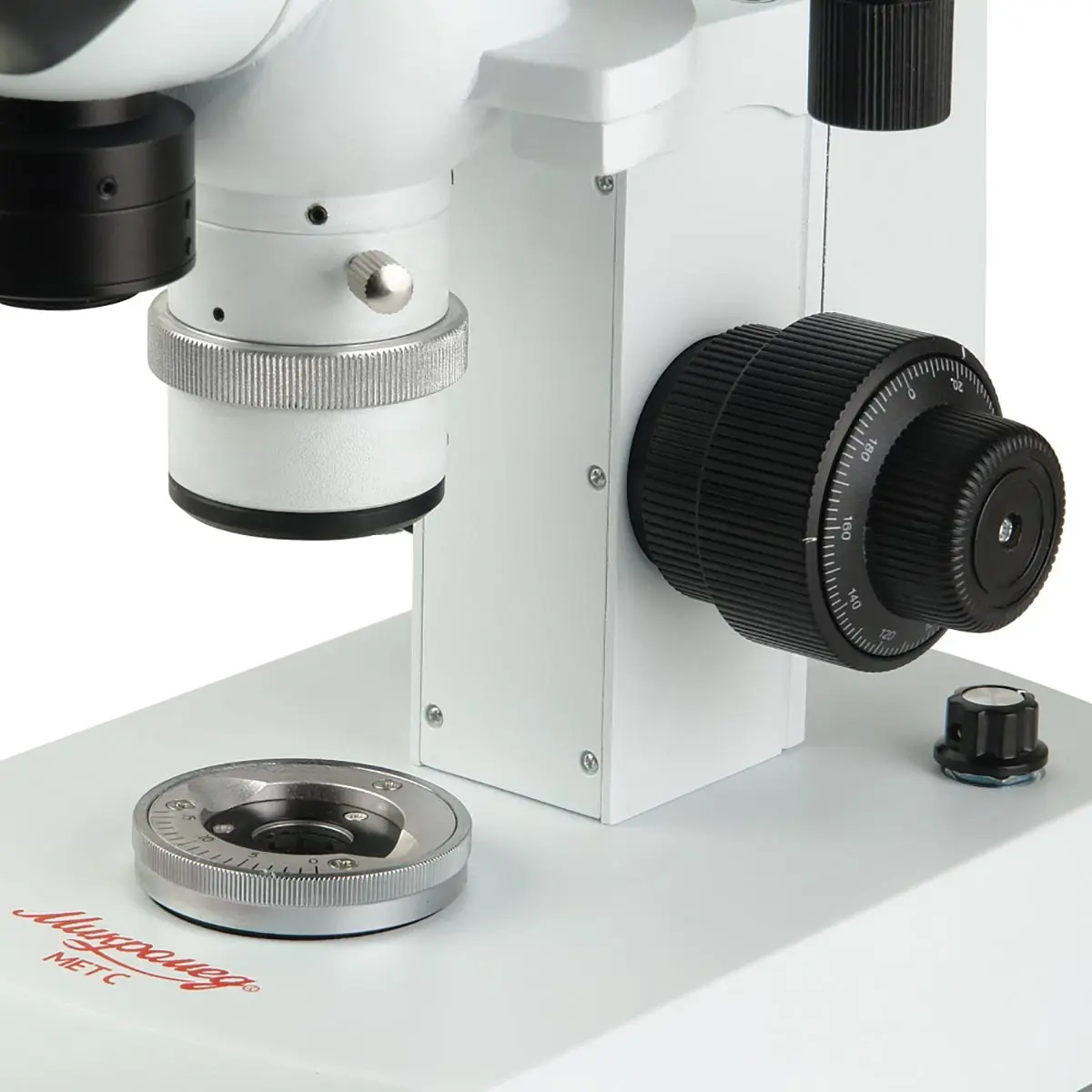 Источник света расположен над объектом исследования, а не под ним. Такое расположение оптических элементов позволяет комфортно работать с крупными и массивными образцами, которые попросту не поместились бы под объектив классического микроскопа. Эта особенность значительно расширяет спектр возможных применений микроскопа Микромед , особенно в работе с деталями сложной формы и значительных размеров. Исследование таких образцов становится простым и эффективным, исключая необходимость сложных манипуляций с образцом.