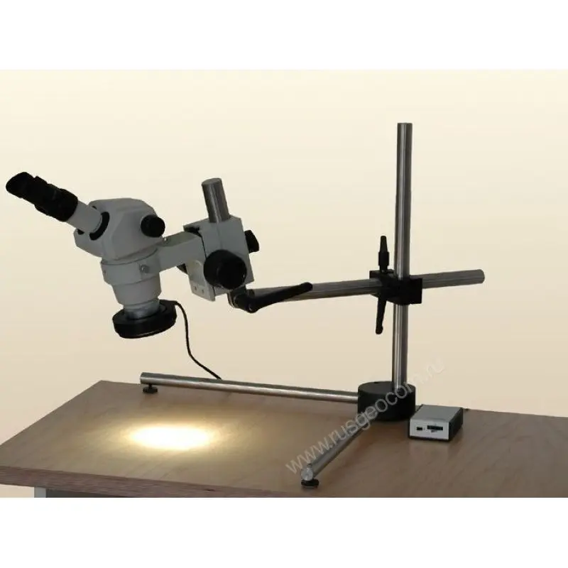 Диапазон увеличений основного модуля микроскопа (базы) от 0,8х до 3,5х и от 0,7х до 3х соответственно, что, в совокупности с окулярами, обеспечивает необходимое увеличение при работе с одним объективом.