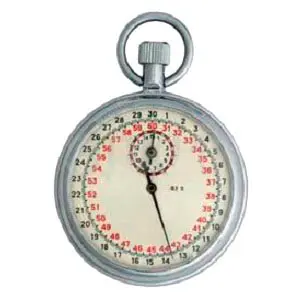 Отсчет времени в секундомере ведется стрелкой по шкале емкостью 30 секунд и ценой деления 0,1 сек. Высокая точность измерений обеспечивается за счет оснащения колебательной системой “баланс-спираль”, используемой в карманных часах, с интервалом 0,4 секунды. Для большей наглядности циферблат и стрелки выполнены в контрастном с остальным корпусом черном исполнении.
