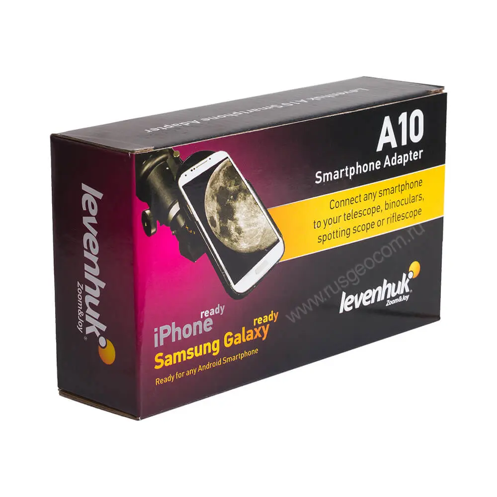 Адаптер Levenhuk A10 – полезный аксессуар для всех, кто увлекается астрофотографией, съемкой дикой природы или микромира. Адаптер позволяет установить любой смартфон на телескоп, микроскоп, бинокль или зрительную трубу. Теперь вы можете фотографировать кольца Сатурна, записывать видео с бегущими кабанами, фиксировать на камеру движения инфузории-туфельки и сразу же отправлять свои фото и видео друзьям.