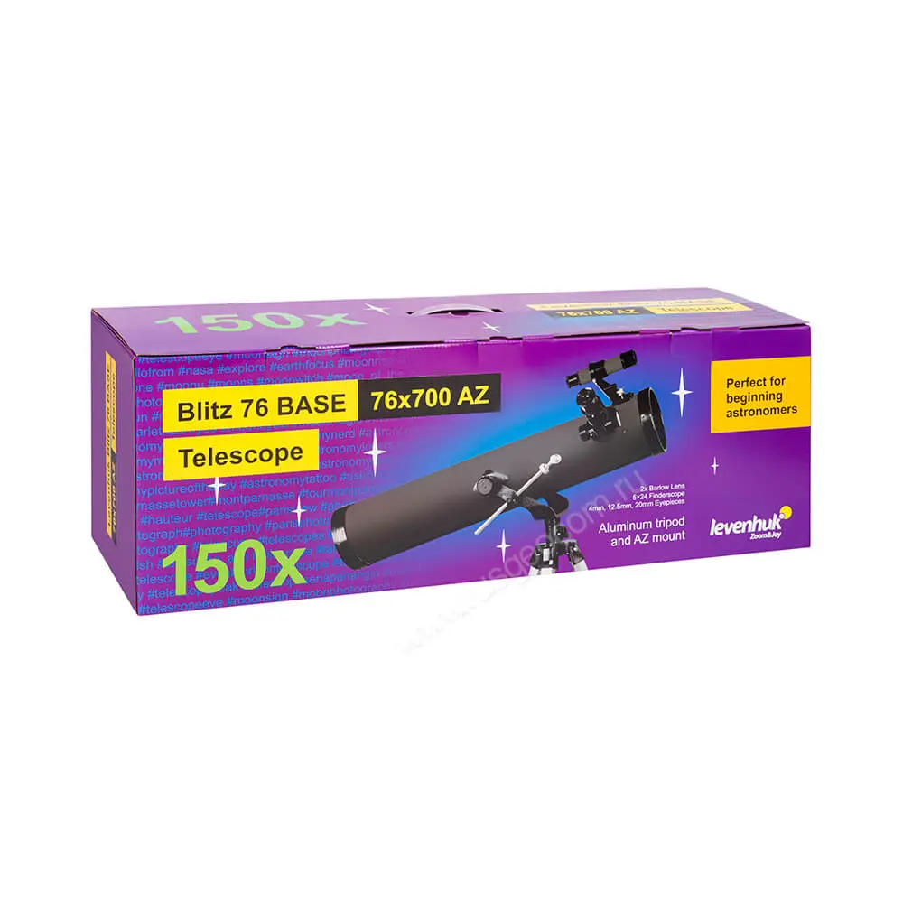 Оптическая труба этого телескопа Levenhuk в 2 раза короче, чем у многих других рефракторов. Компактные размеры достигнуты без ущерба для оптических возможностей, а вес всей конструкции максимально снижен. Так, штатив выполнен из легкого и прочного алюминия. В комплект также входит рюкзак, в котором удобно хранить, транспортировать и переносить прибор.