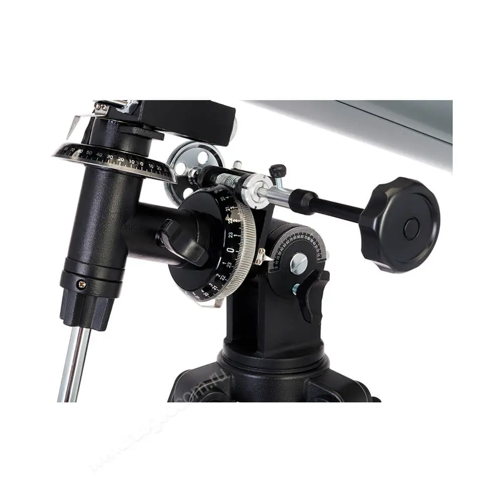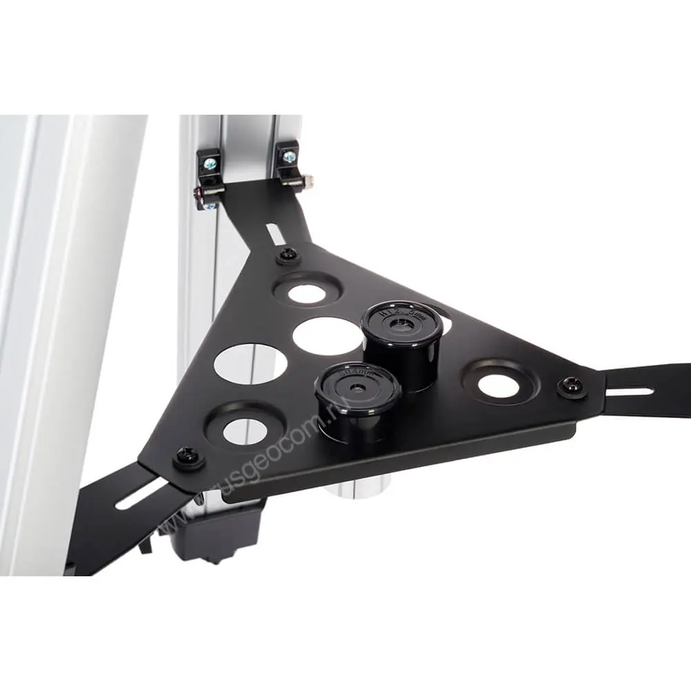 Легкий алюминиевый штатив можно подстроить под рост пользователя, зрительная труба на нем размещается устойчиво и надежно. Высоту каждой ножки можно настроить отдельно, что особенно актуально на неровной поверхности. Предусмотрен удобный столик для аксессуаров, полезный при выездных наблюдениях.