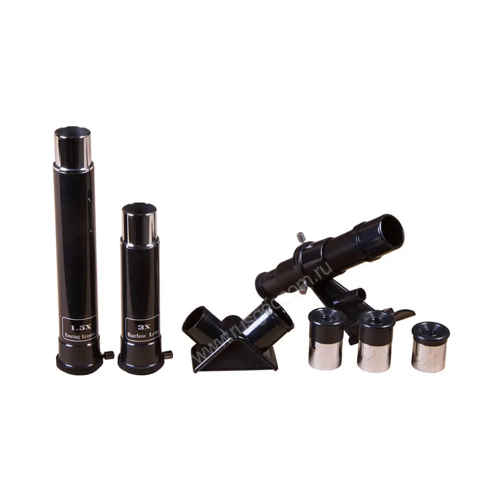 В комплект рефрактора включены все необходимые аксессуары, в том числе диагональная призма, необходимая для комфортного изучения наземных объектов. Во время работы все элементы комплекта можно разместить на специальном лотке, который монтируется на штатив. Ножки алюминиевой треноги регулируются по высоте независимо, что позволяет выставить оборудование оптимальным образом на неровной поверхности.