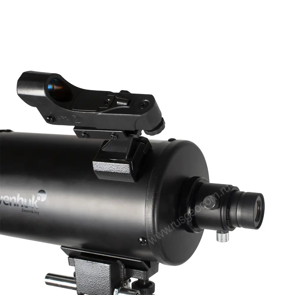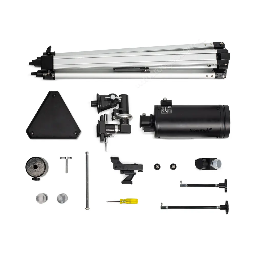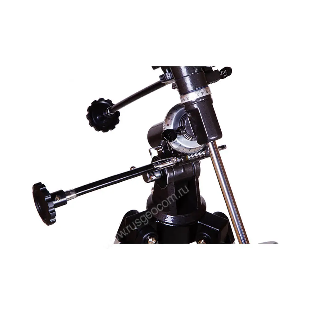Телескопа Levenhuk установлен на надежной экваториальной монтировке, которая позволяет легко отслеживать небесные тела. Прибор можно использовать в качестве балконного или полевого, к чему располагают скромные габариты. При наличии специального переходника на выходной втулке можно смонтировать камеру для занятий астрофотографией.