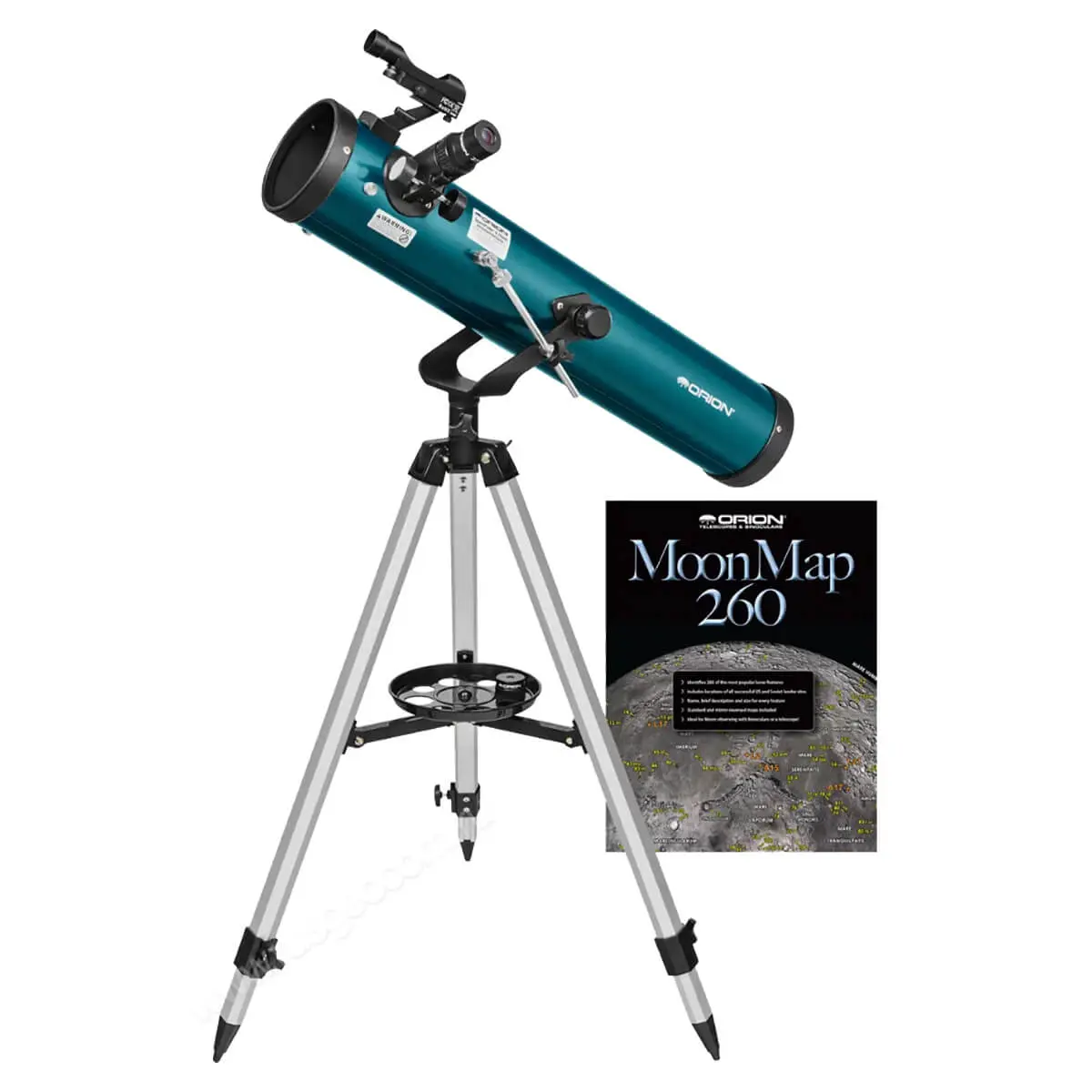 - Также в комплекте: искатель с красной точкой, фокусер 1,25", карта лунной поверхности Orion MoonMap 260.