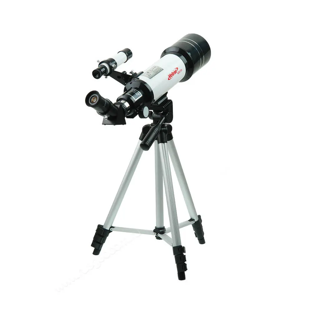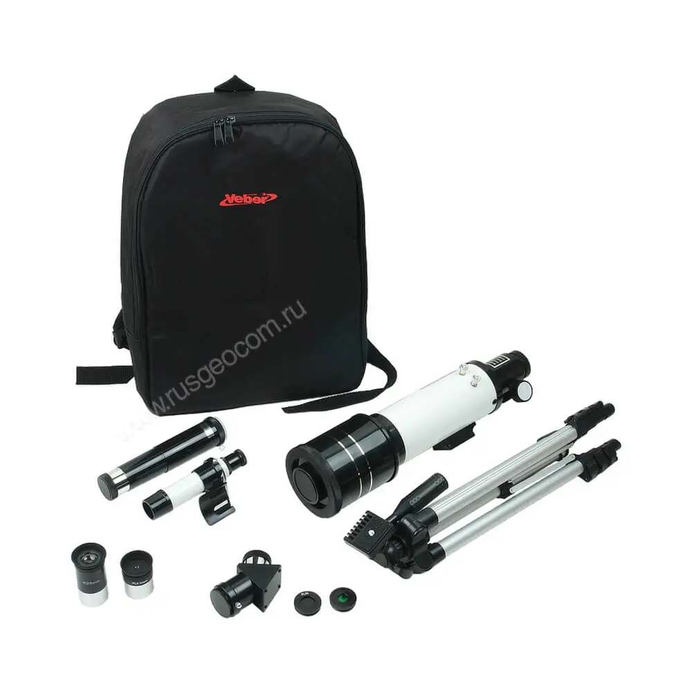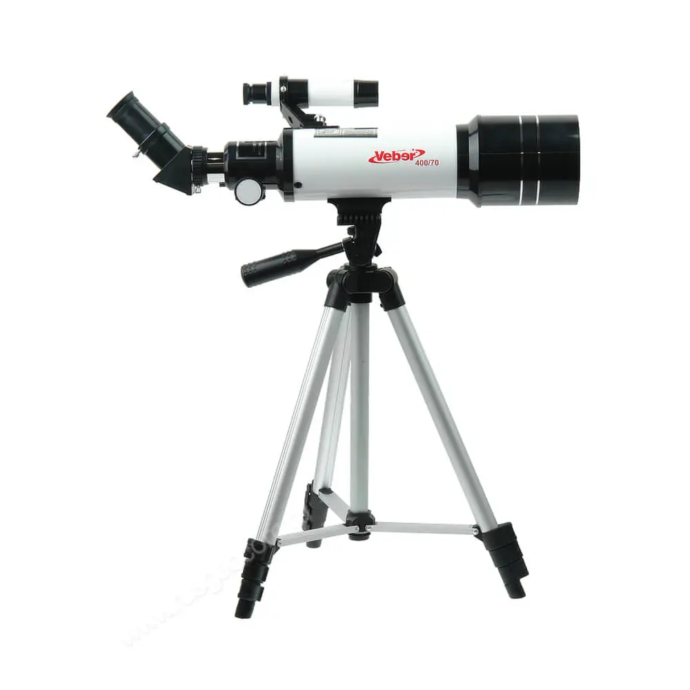 Veber 400/70 – простой и надежный линзовый телескоп-рефрактор для начинающих любителей астрономии, как детей, так и взрослых. Справиться с этой моделью сможет любой: достаточно установить трубу на алюминиевую треногу – и прибор готов к работе. Уход за телескопом сводится к протиранию объектива и окуляра специальной салфеткой. Главное аккуратно обращаться с прибором, и он прослужит долгие годы (на него распространяется пожизненная гарантия).