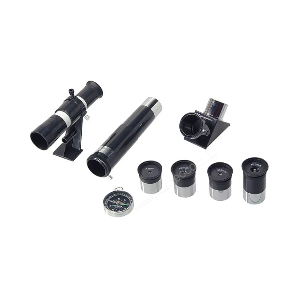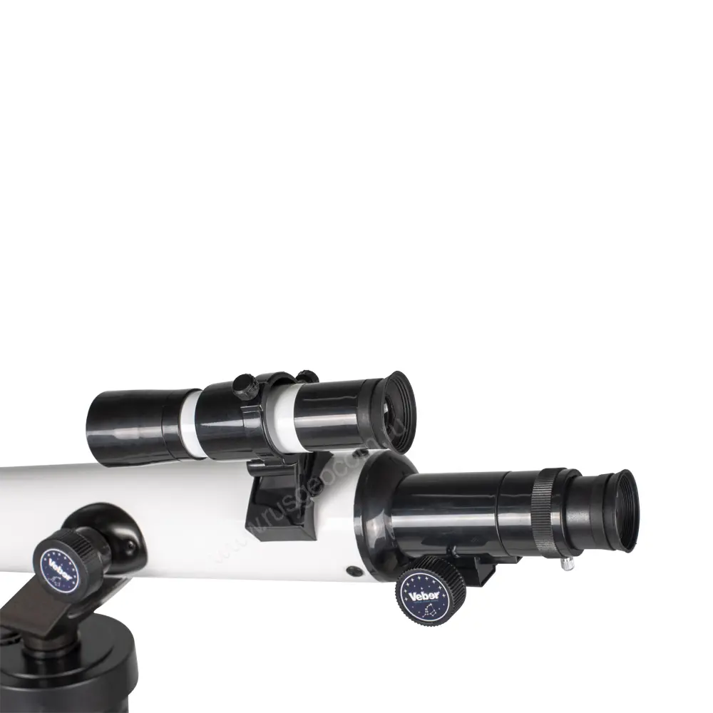 В отличие от оптических приборов Veber начального уровня, комплектуемых двухлинзовыми окулярами Гюйгенса, Veber F 700/60TXII AZ в кейсе поставляется с трехэлементными окулярами Кельнера. В них используется оптическая схема из одиночной линзы и дублета, который обеспечивает коррекцию хроматических искажений. Проблема бликования линз решена с помощью просветляющего покрытия, за счет чего также удалось улучшить контрастность изображения в мелких деталях и повысить светопропускание.