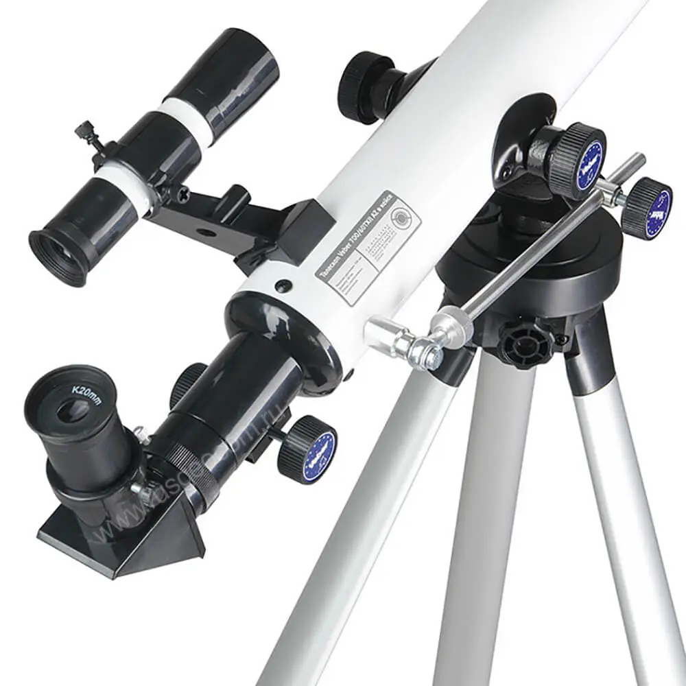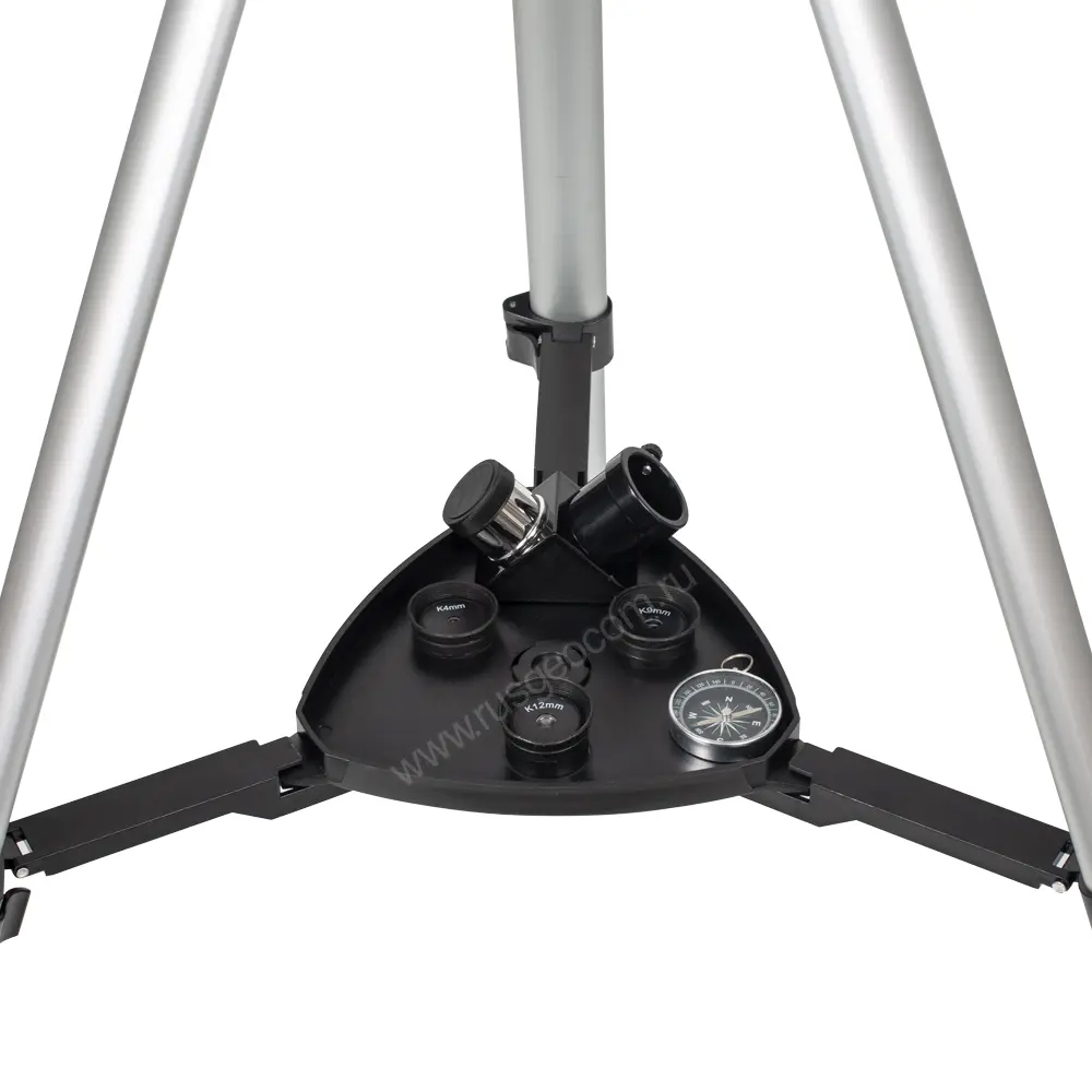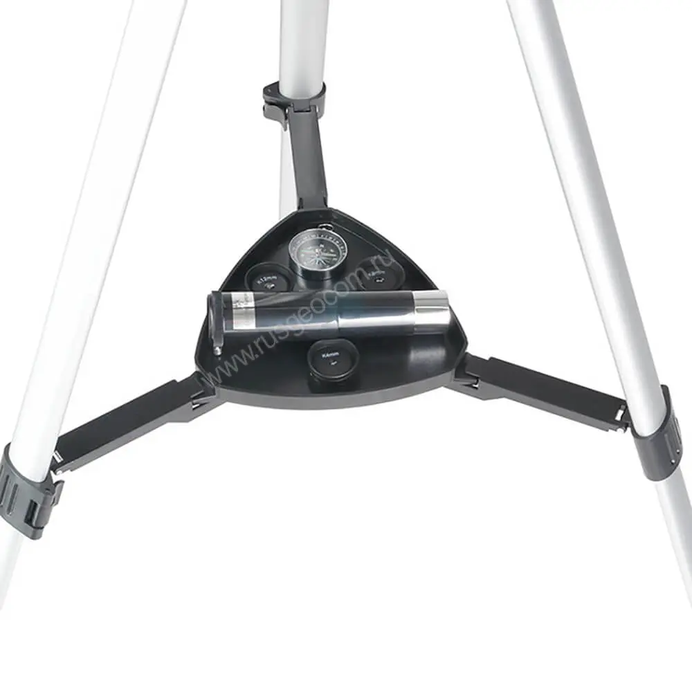 Высота штатива регулируется в пределах от 60 до 110 см, что дает возможность размещать телескоп как на полу, так и на столе. Азимутальное наведение выполняется с использованием большого кольца на штативной головке. Тонкая регулировка положения зрительной трубы в вертикальной плоскости производится с использованием телескопической тяги с винтовым механизмом. Для упрощения наведения телескоп оборудован искателем, который установлен под 45-градусным наклоном в продольной плоскости – благодаря этому зрительная труба не мешает ориентированию.