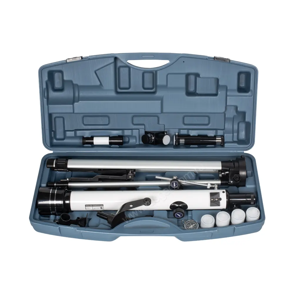 Телескоп Veber F 700/60TXII AZ в кейсе - мобильный комплект, который включает в себя всё необходимое для выездных наблюдений за небосводом или наземными объектами. Оптический прибор выполнен по схеме рефрактора с 60-миллиметровой апертурой, который устанавливается на алюминиевой раздвижной треноге с помощью азимутального монтажа. Устройство станет желанным подарком для начинающего астронома.