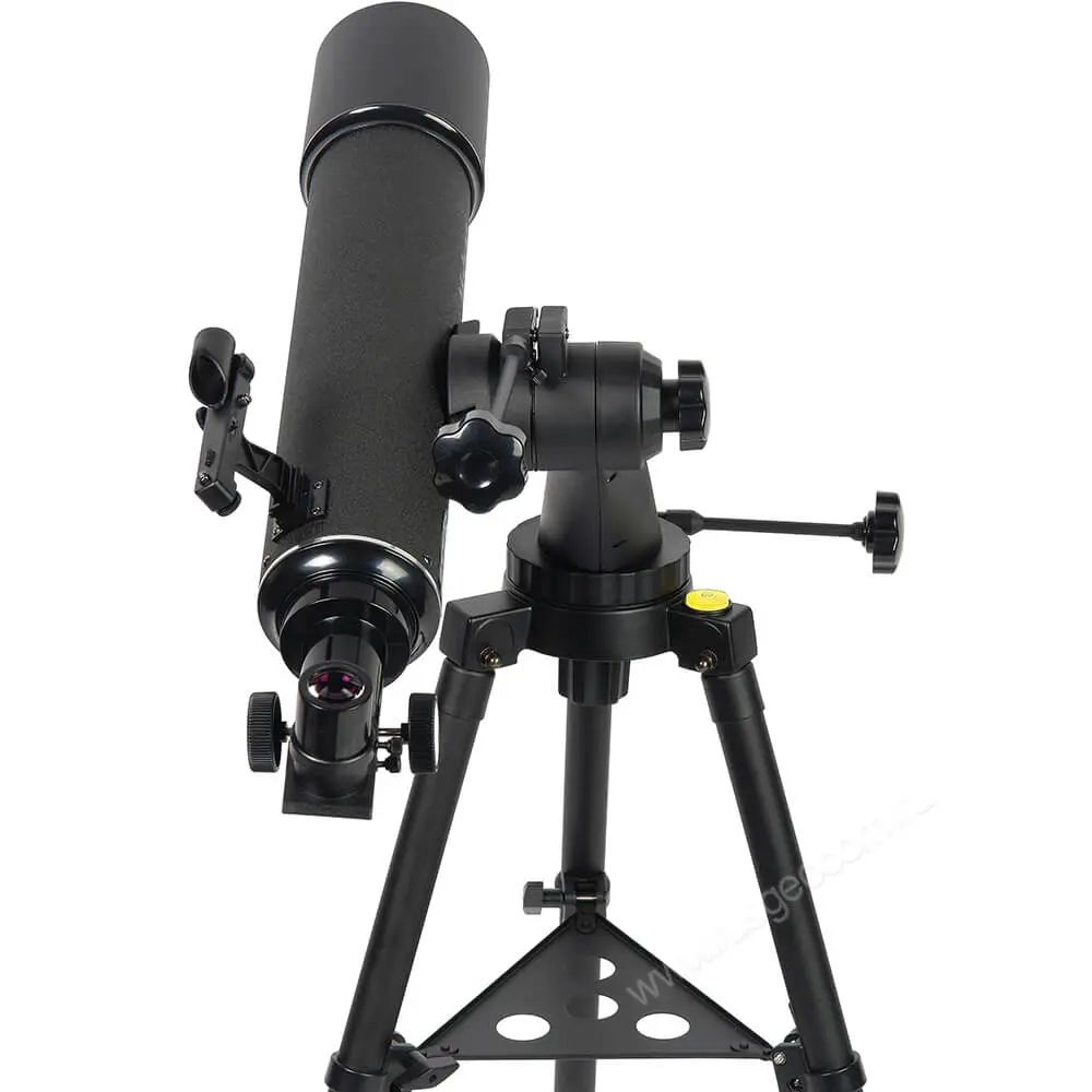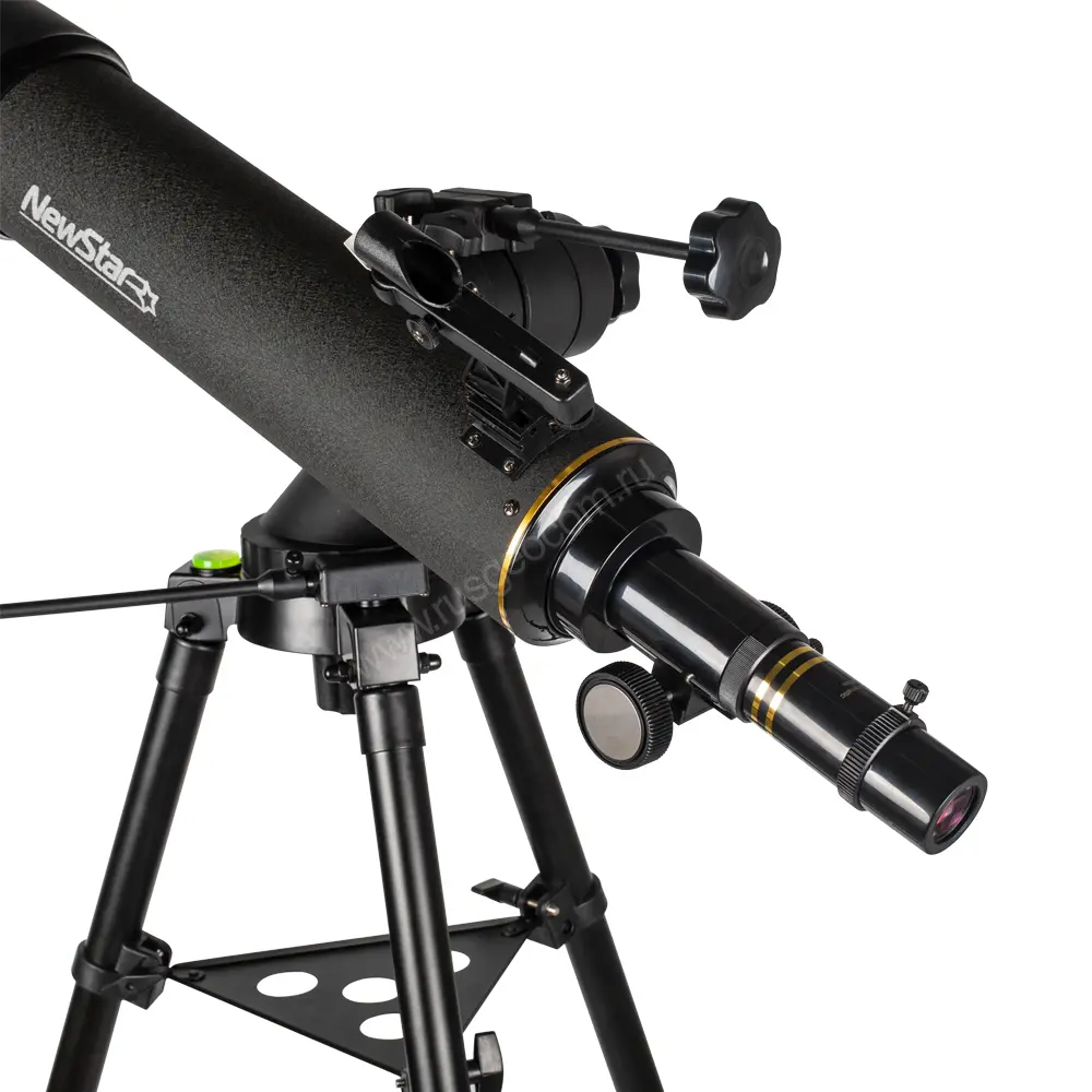 Для удобства наблюдений в зенитной области, при больших углах возвышения зрительной трубы, используется наклонная конструкция опоры монтировки. Регулировка высоты установки телескопа Veber NewStar LT60090 AZII в пределах 72 - 124 см производится путем изменения длины выдвижных ножек треноги, которые оборудованы винтовыми зажимами. Штатив оснащен пузырьковым уровнем круглого типа для быстрого выравнивания опорной площадки и указателем на север для упрощения ориентирования телескопа по компасу.