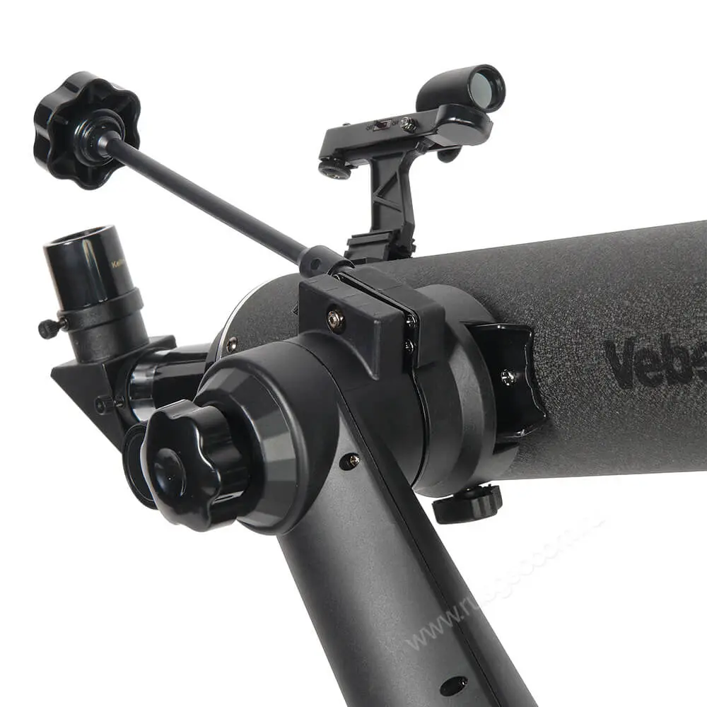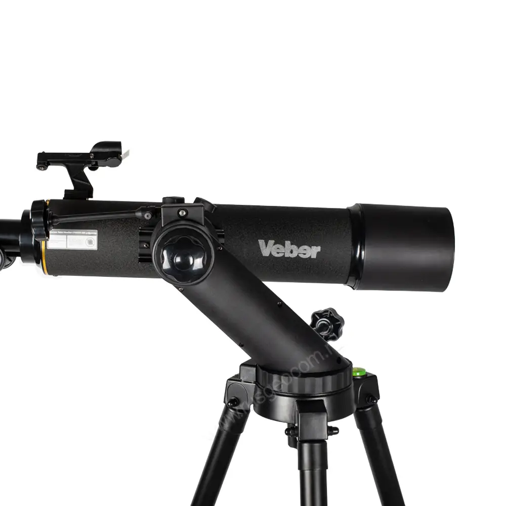 - Удобство управления – телескоп Veber комплектуется винтами с удлиненными тягами для вертикального и горизонтального наведения. Двухсторонним фокусером реечного типа можно управлять как правой, так и левой рукой.