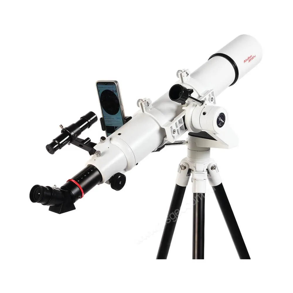 Держатель для смартфона шириной до 80 мм(в комплекте) крепится винтом на хомут трубы. Современные приложения для смартфона демонстрируют карту звездного неба, названия небесных объектов и многое другое – это помогает легче ориентироваться "в космосе" начинающему пользователю.