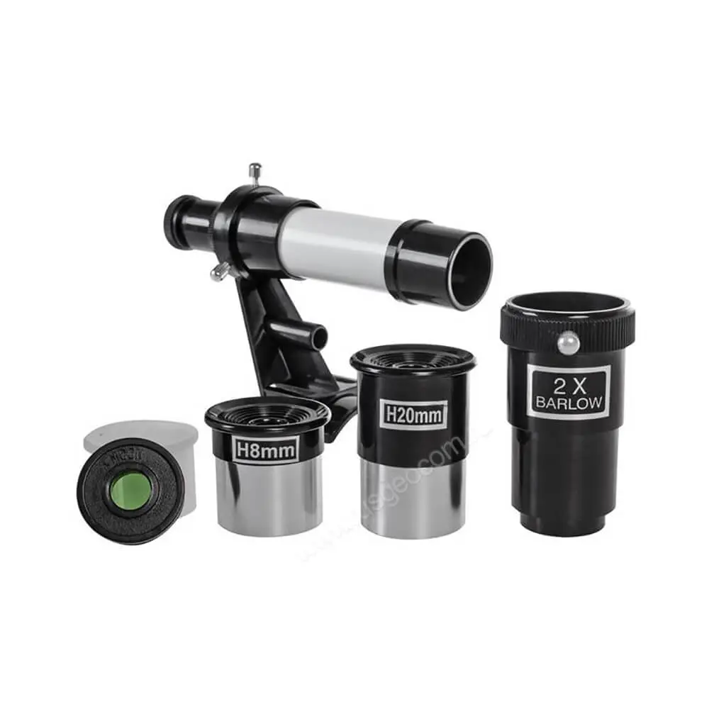 В комплект к телескопу входят два окуляра (8 мм и 20 мм) и 2х кратная линза Барлоу, благодаря этому можно менять кратность увеличения простой заменой окуляров.
