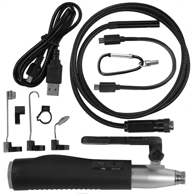 Эндоскоп предлагает пользователям множество дополнительных функций. Специальные насадки в виде крючка, зеркала или магнита, которые устанавливаются на корпус видеокамеры, позволяют выполнять специфические задачи с максимальной эффективностью. Это расширяет возможности использования устройства в различных сферах, от диагностики до ремонта.