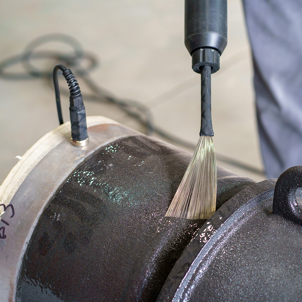 Дефектоскоп позволяет проводить выборочных контроль сплошности изоляционных покрытий на трубопроводах любого диаметра с использованием щеточных и пружинных электродов на наружной и внутренней поверхностях труб.