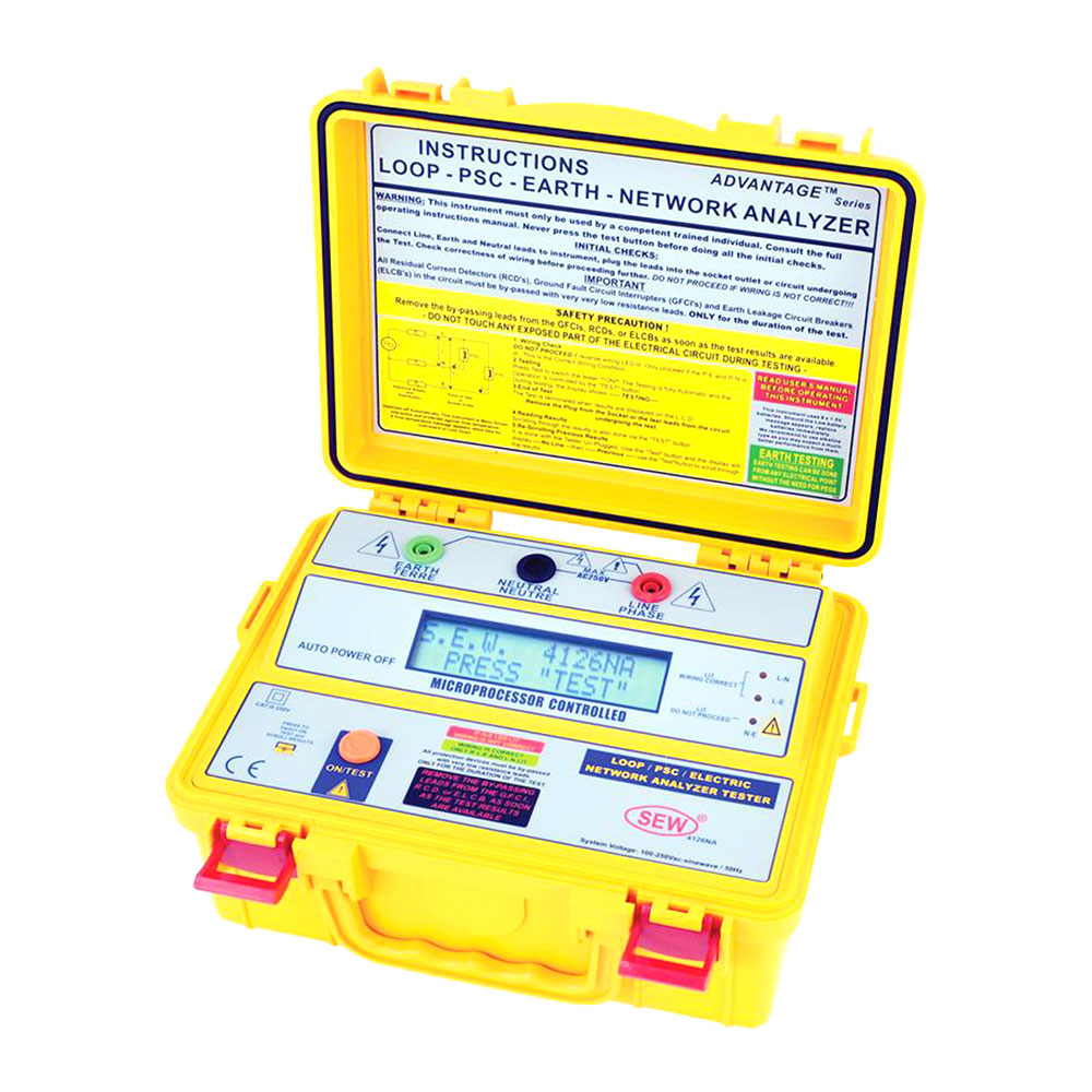 Измеритель параметров электрических сетей 4126 NA выполнен в усиленном корпусе измененного типоразмера (ударо-, пыле-, и влагозащищенное исполнение) и предназначен для проверки надежности электрической проводки в однофазных сетях и системах с небольшим энергопотреблением (макс. ток нагрузки 10 А). Для информативного отображения результатов измерений прибор имеет увеличенный ЖК-индикатор.