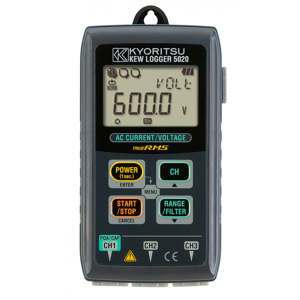 Регистратор параметров электросети Kyoritsu KEW Model 5020 обладает 3-канальным входом для одновременной записи тока утечки, тока нагрузки и напряжения при помощи внешних клещевых адаптеров в четырех различных режимах: