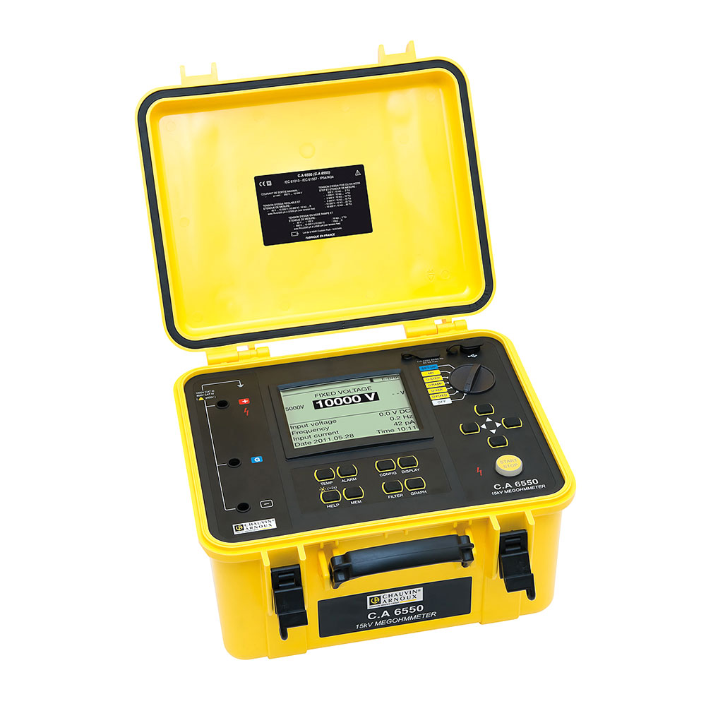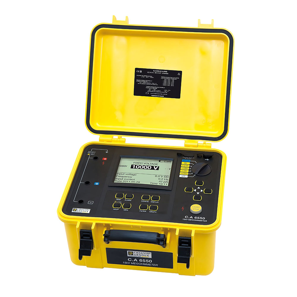 Измеритель изоляции С.А 6550 благодаря своему прочному корпусу, отлично подходит для работы в полевых условиях и на производстве, обеспечивает высококачественный и точный контроль изоляции. Испытательное напряжение до 10 кВ идеально подходит для испытания трансформаторов, двигателей, генераторов, кабелей, а также любого другого высоковольтного оборудования двигателей с номиналом выше 12 кВ и выше.