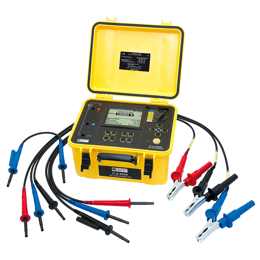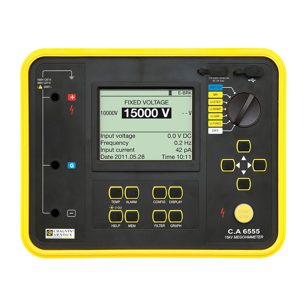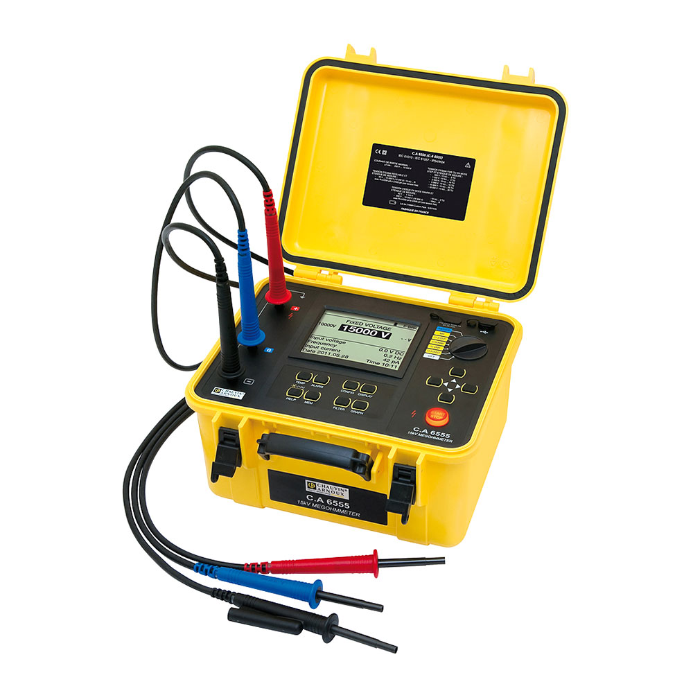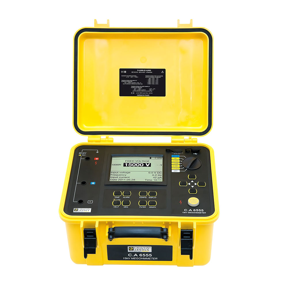 Измеритель изоляции С.А 6555 благодаря своему прочному корпусу, отлично подходит для работы в полевых условиях и на производстве, обеспечивает высококачественный и точный контроль изоляции. Испытательное напряжение до 15 кВ идеально подходит для испытания трансформаторов, двигателей, генераторов, кабелей, а также любого другого высоковольтного оборудования двигателей с номиналом выше 12 кВ и выше.