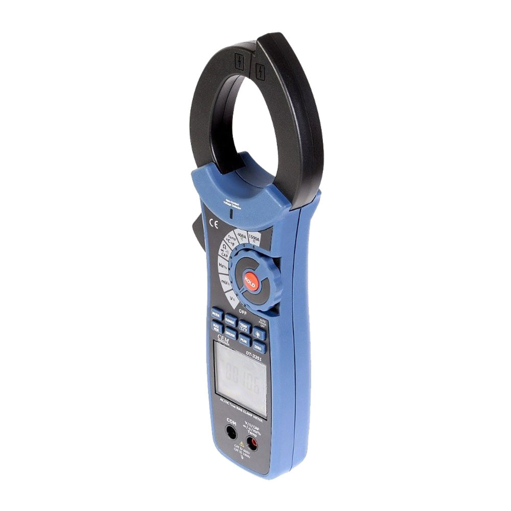 DT-3351 – серия профессиональных токовых клещей для измерения постоянного и переменного тока. Клещи измеряют истинное среднеквадратичное значение (True RMS) переменного тока и напряжения. Клещи обладают различными дополнительными функциями, такими как измерение сопротивления, емкости, диодный тест и т.п. Также с помощью этих токовых клещей можно измерять пусковой ток двигателей, приборов освещения и т.д.