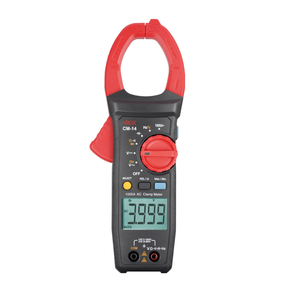 Токоизмерительные клещи RGK CM-14 самостоятельно выбирают пределы исследования в зависимости от получаемых значений, что позволяет специалисту сразу приступить делу, не тратя время на предварительные настройки.