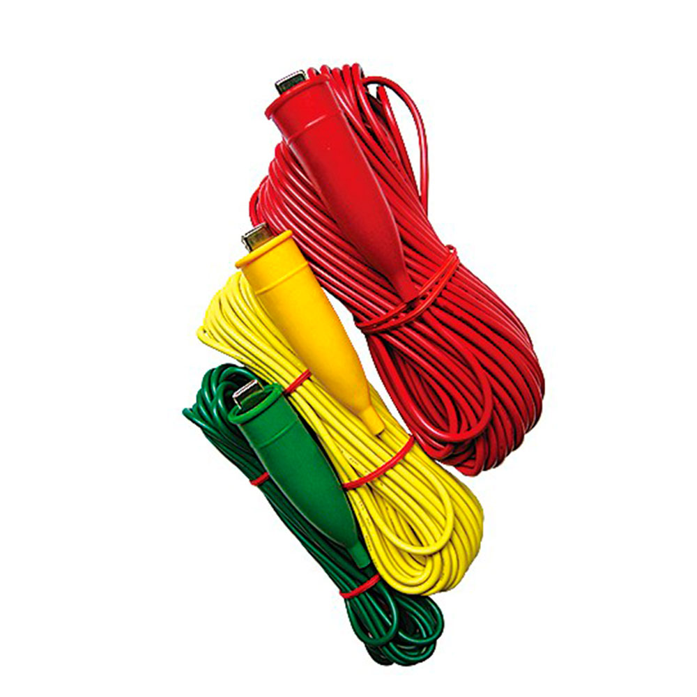 - измерение сопротивления заземления. Тестирование с использованием классического способа напряжение - ток при помощи 2-х вспомогательных штырей заземления без внешнего источника питания. Все измерительные щупы и вспомогательные штыри входят в комплект поставки.