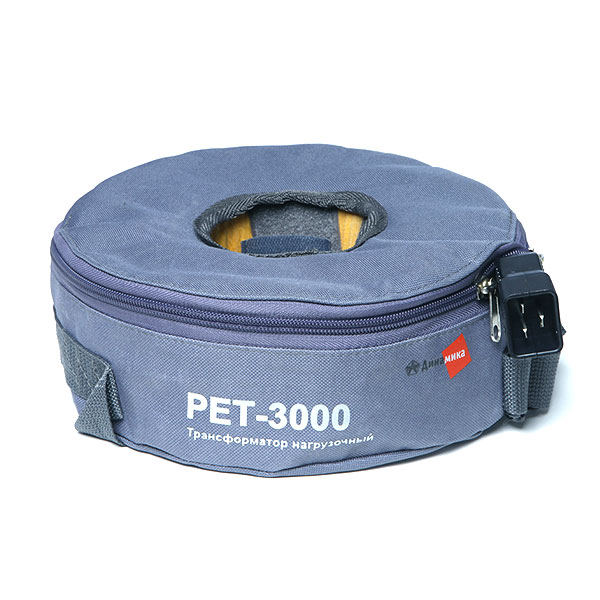 Нагрузочный трансформатор РЕТ-3000 представляет собой тороидальный магнитопровод с намотанной на него первичной обмоткой, который помещен в чехол.