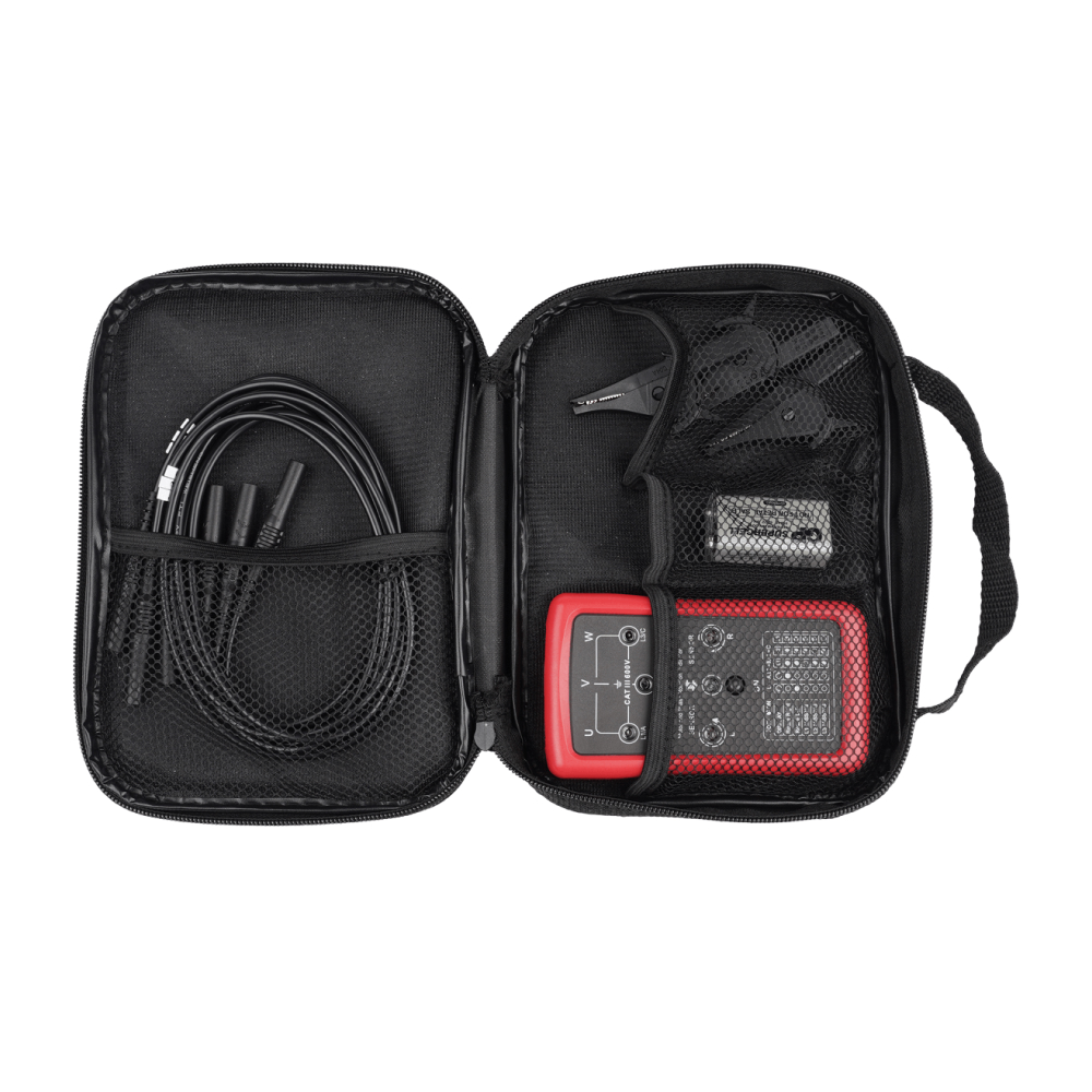 Устройство готово к работе прямо из коробки т. к. в комплект поставки входят тестовые провода, зажимы типа “крокодил” для подключения к сетям или оборудованию, а также подходящий элемент питания. Также предусмотрен чехол для безопасного хранения и транспортировки указателя последовательности фаз RGK RP-69.