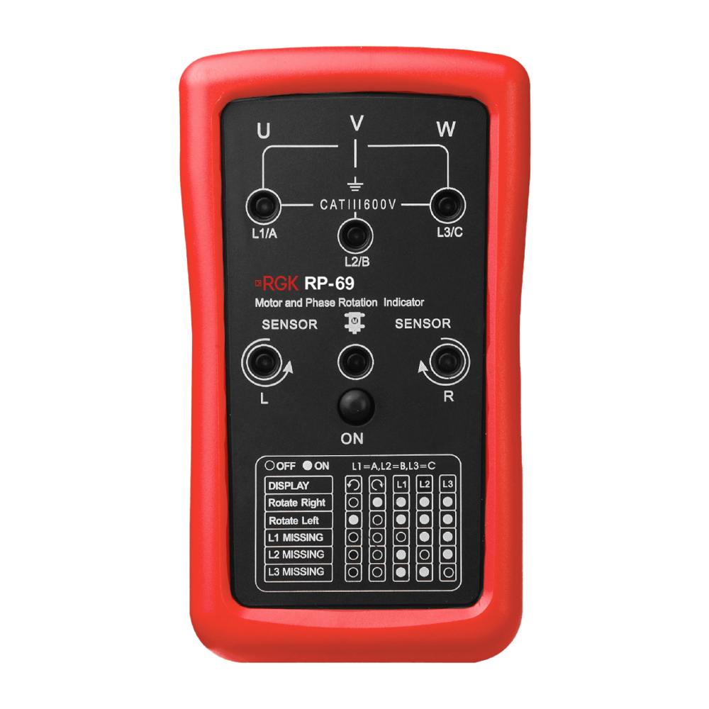 Фазоуказатель RGK RP-69 - это надежный прибор в ударопрочном корпусе, который в первую очередь ориентирован на специалистов-электротехников, выполняющих обслуживание сетей и установок. Эта модель позволяет быстро провести диагностику трехфазной электросистемы или оборудования, например, электродвигателя.