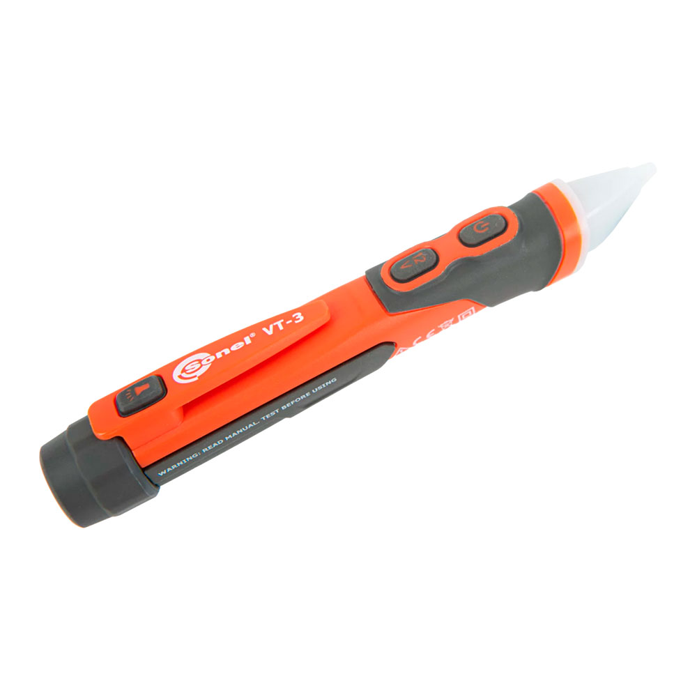 Бесконтактный индикатор напряжения VT-3 предназначен для обнаружения напряжения переменного тока в кабельных линиях и электрооборудовании. Индикатор имеет базовый диапазон обнаружения 100...1000 В, но нижний порог можно понизить до 12 В нажатием специальной кнопки. Цветные светодиоды, расположенные на торце устройства, информируют о режиме работы и уровне определяемого напряжения.