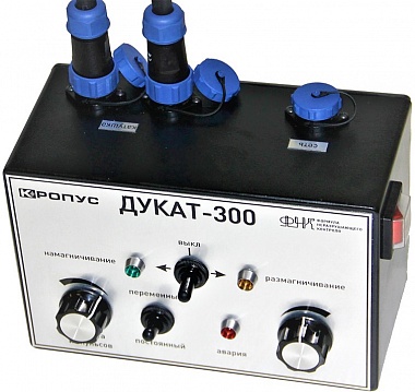 Магнитопорошковый дефектоскоп Дукат-300 предназначен для намагничивания различных изделий в процессе магнитопорошкового контроля и для их последующего размагничивания. Максимальный диаметр изделий - до 300мм.