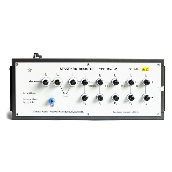 Мера RN-1-P обеспечивает задание активного сопротивления из ряда: 0,05 Ом; 0,45 Ом; 0,5 Ом; 0,8 Ом; 1,25 Ом; 1,3 Ом; 1,6 Ом; 2,05 Ом; 2,1 Ом. Используется для имитации и задания малых значений активного сопротивления в электрических системах с напряжением 220/380 В и частотой 50 Гц переменного тока.