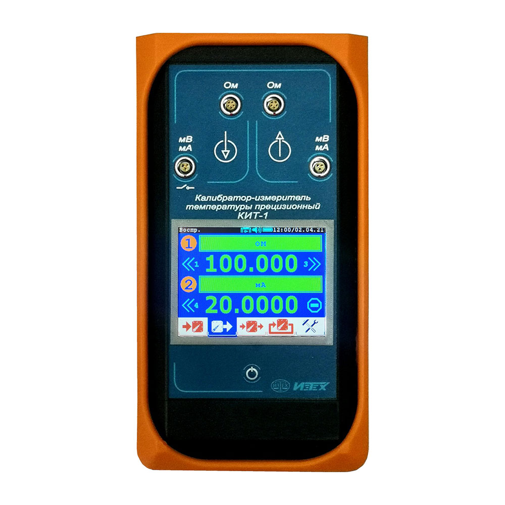 Калибратор-измеритель температуры (многофункциональный калибратор) прецизионный КИТ-1 предназначен для высокоточного измерения и воспроизведения активного сопротивления (Ом), напряжения (мВ) и силы постоянного тока (мА); сигналов датчиков температуры (ТС и ТП); преобразователей измерительных (ПИ). КИТ-1 позволяет тестировать преобразователи измерительные и реле в автоматическом режиме. Для питания ПИ в приборе предусмотрен блок питания с напряжением 24В постоянного тока.КИТ-1 имеет пять вкладок с режимами работы: «Измерение», «Воспроизведение», «Измерение/Воспроизведение», «Тестирование» и «Настройки».