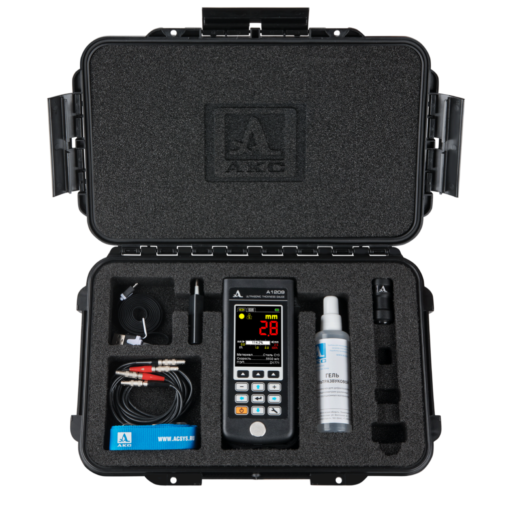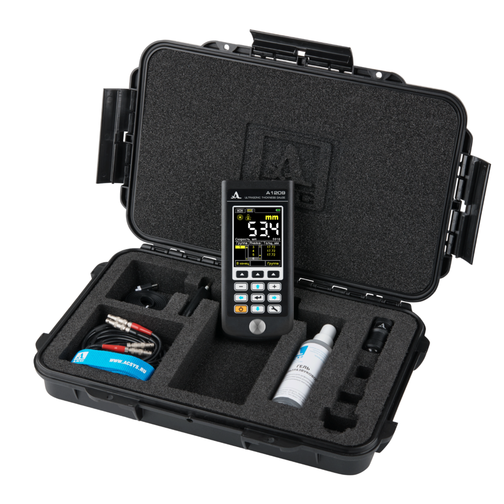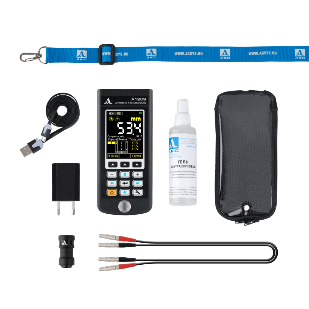 В комплект поставки входит раздельно-совмещенный преобразователь D1771 4.0A0D12CL, который обладает повышенной износостойкостью и обеспечивает стабильные измерения на большинстве объектов, что позволяет проводить измерения, как на корродированных поверхностях, так и на плоских гладких объектах.