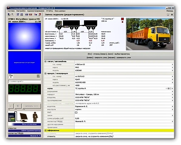 Пост весового контроля предназначен для контроля допустимых весовых параметров при перевозке тяжеловесных грузов по дорогам общего пользования, сбора денежных средств и компенсации ущерба, наносимого автомобильным дорогам, а также штрафов за нарушения действующих ограничений по осевым нагрузкам на дорожное полотно.