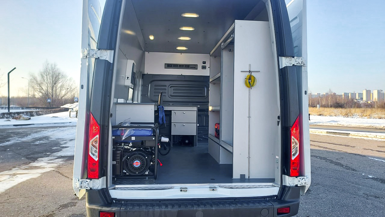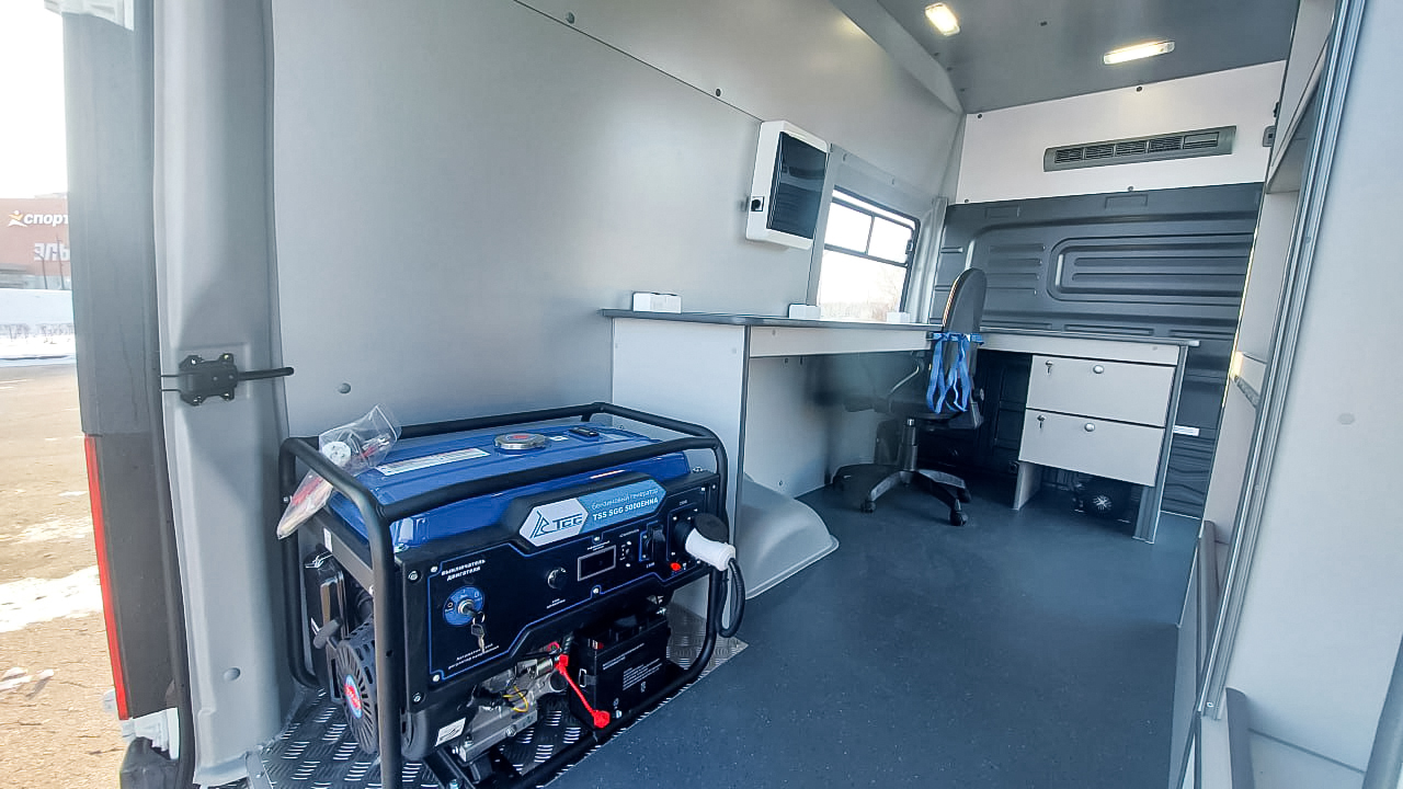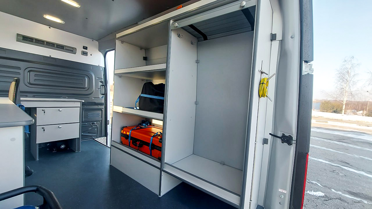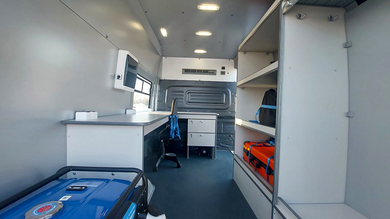Автомобиль оснащён всем необходимым для комфортной и эффективной работы специалистов: