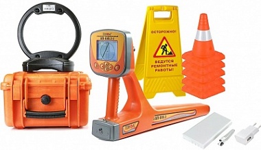Трассопоисковый комплект для поиска подземных коммуникаций (кабельных линий, металлических трубопроводов, и прочих коммуникаций из токопроводящих материалов). В составе комплекта приемник в виде моноблока с большим ЖК дисплеем, на который выводится изображение трассы и в автоматическом режиме происходит расчет глубины залегания коммуникации до 10 м, а также величины тока в линии.
