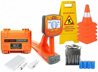 Комплект оснащен новейшим компактным автономным генератором АГ-107 со встроенными элементами питания, дисплеем и встроенной индукционной антенной, для трассировки коммуникации бесконтактным способом. Выходная мощность генератора до 60 Вт.