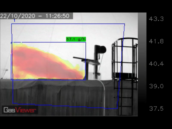 - Электронная стабилизация изображения и усиление контрастности фона для облегчения обнаружения газа оператором