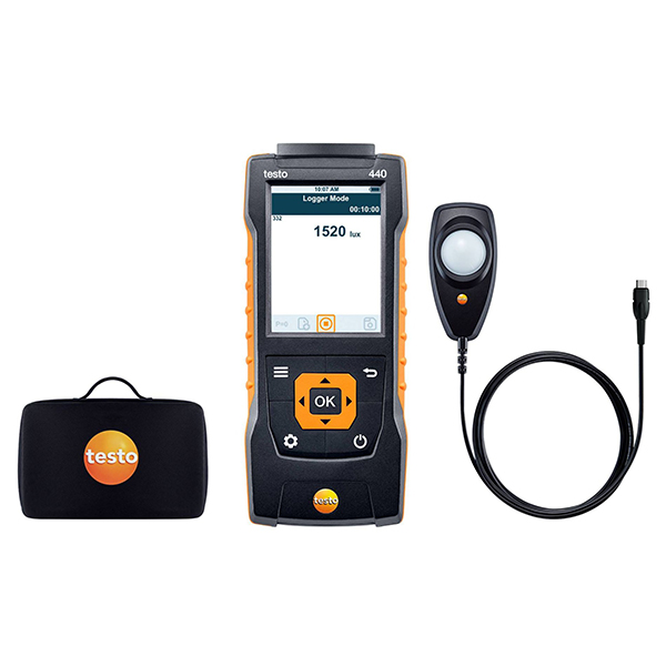 Выберите комплект, включающий прибор для измерения скорости и оценки качества воздуха testo 440 и люкс-зонд для измерения уровня освещенности на рабочем месте.