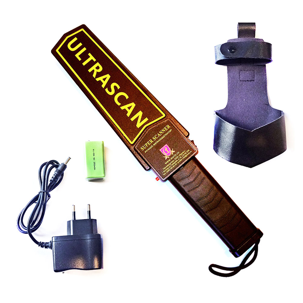 Ручной металлоискатель UltraScan SuperScanner версия Pro отличается высокой чувствительностью устройства и расширенной комплектацией. Ручной металлодетектор UltraScan SuperScanner Pro комплектуется всем необходимым для долгой и эффективной работы. А именно в комплекте поставки будет: металлоискатель, поясной держатель, зарядное устройство и аккумулятор 9В Крона.